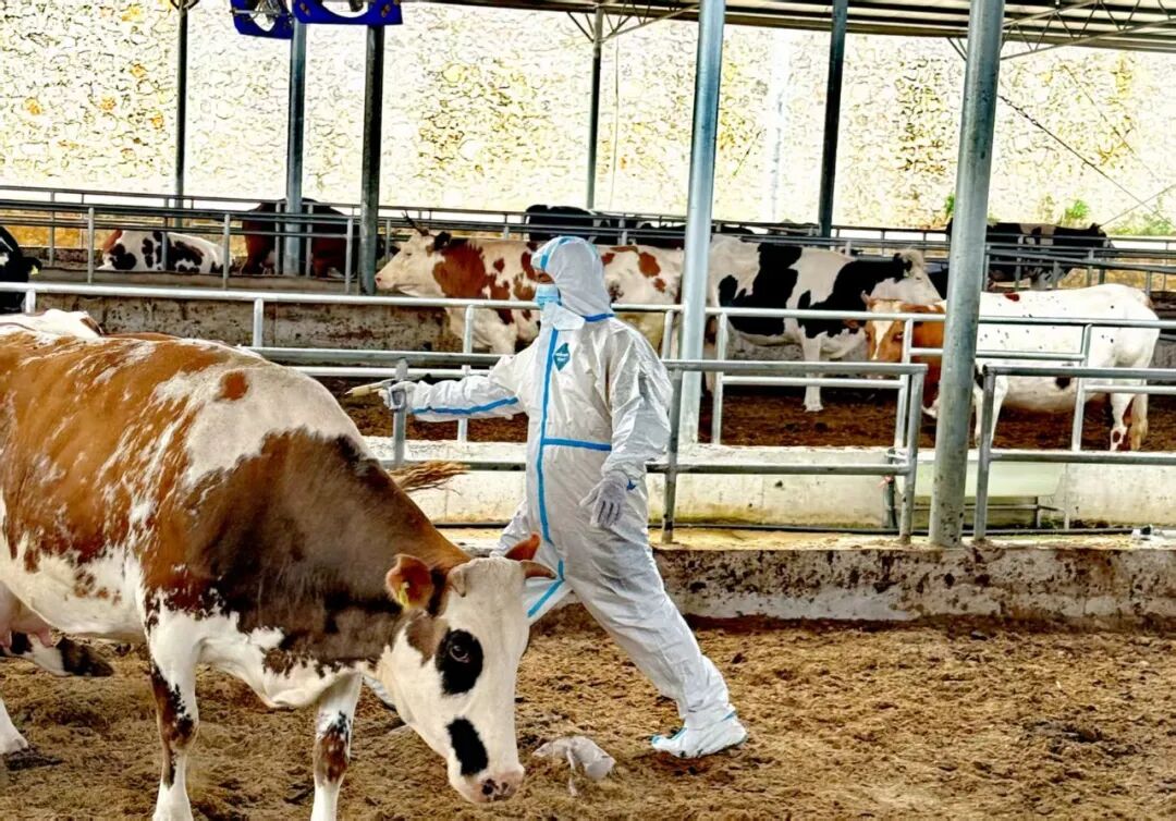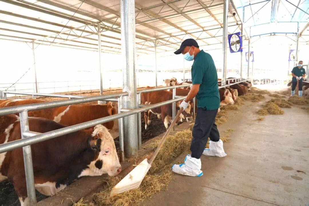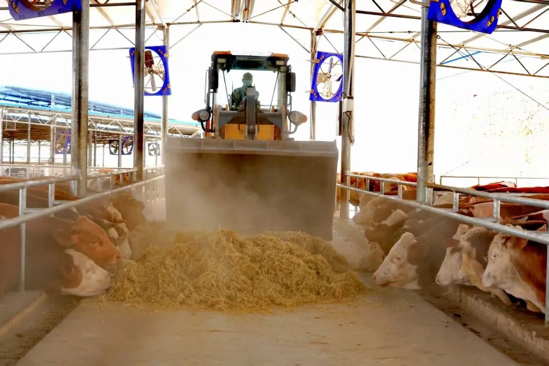 4月16日,记者走进公司的智慧养牛基地,现场一派繁忙而有序的景象,铲车驾驶员正操作设备投喂肉牛,防疫人员忙着为牛群注射疫苗,保洁员认真清扫牛场。智慧系统大屏上,牛犊栏的实时画面清晰可见,智能水槽自动补水,大功率风扇送来阵阵凉风。从物料加工到疫病防控,各项工作井然有序。