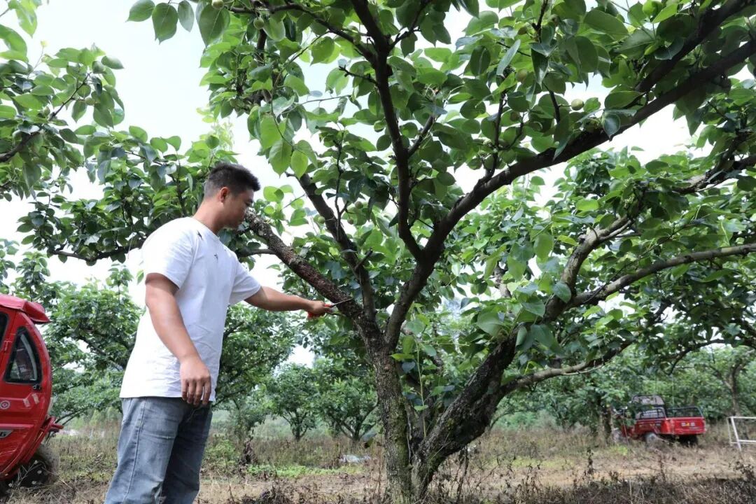 “现在是青花梨管护的黄金时节,一点都马虎不得。”黄炳智感慨道,“我种15亩青花梨,每年这个时节,疏枝、疏果、施肥这几项核心农活必须做精做细。之前全靠老经验粗放管理,产量和品质不稳定。如今有农技人员上门一对一指导,教我们科学留枝、精准管护,今年梨园长势格外喜人,预计亩产可达6000斤,我们对丰收充满信心。”