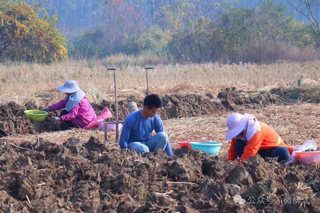 1月2日,记者走进五道村五道屯看到,连片种植的马蹄田里,种植户们正用钉耙用力翻出泥土下的马蹄,待马蹄“崭露头角”后用小铁锹挖出,并按照马蹄品质、个头大小逐一分类、打包装袋,动作娴熟而有序。