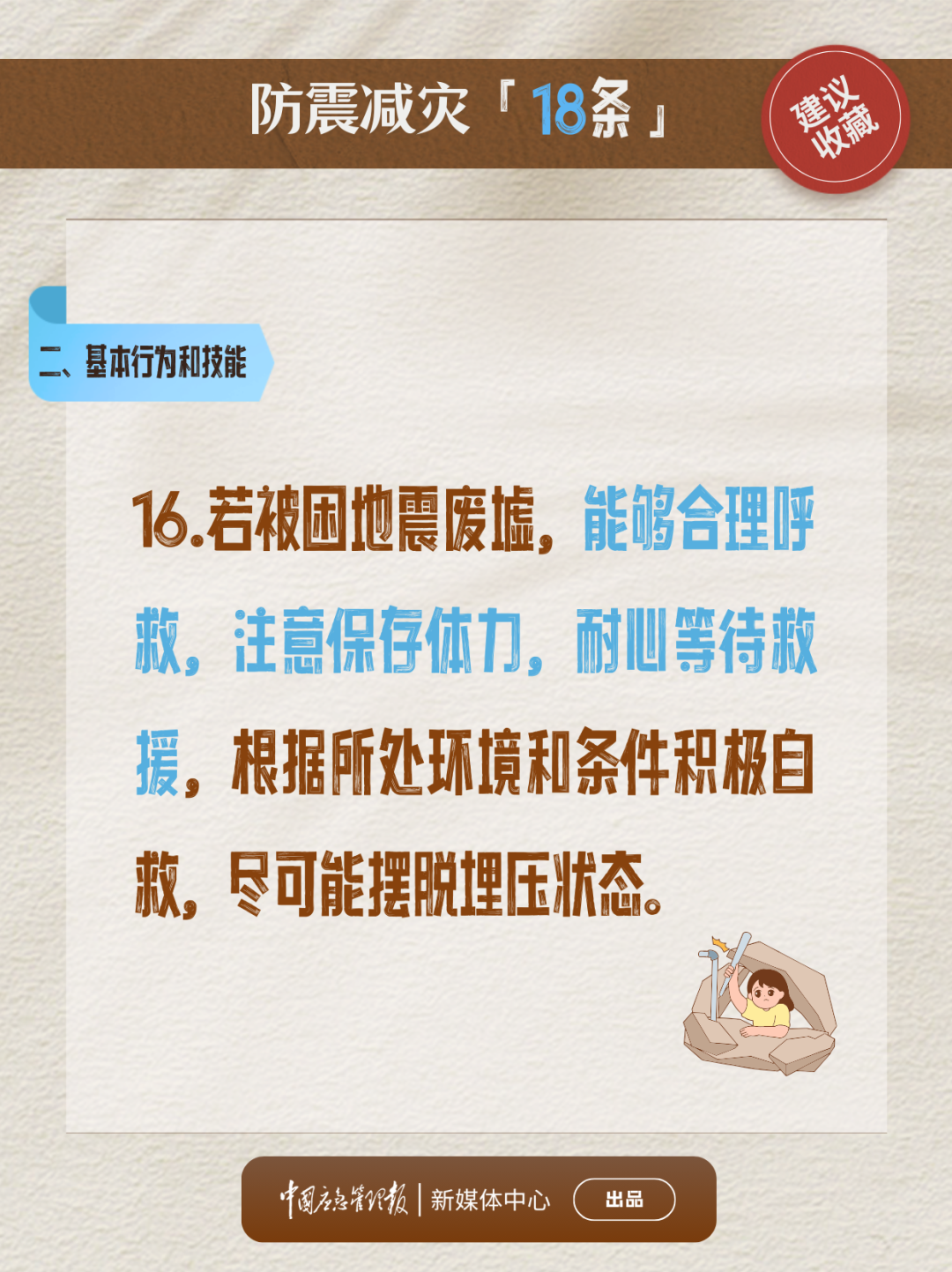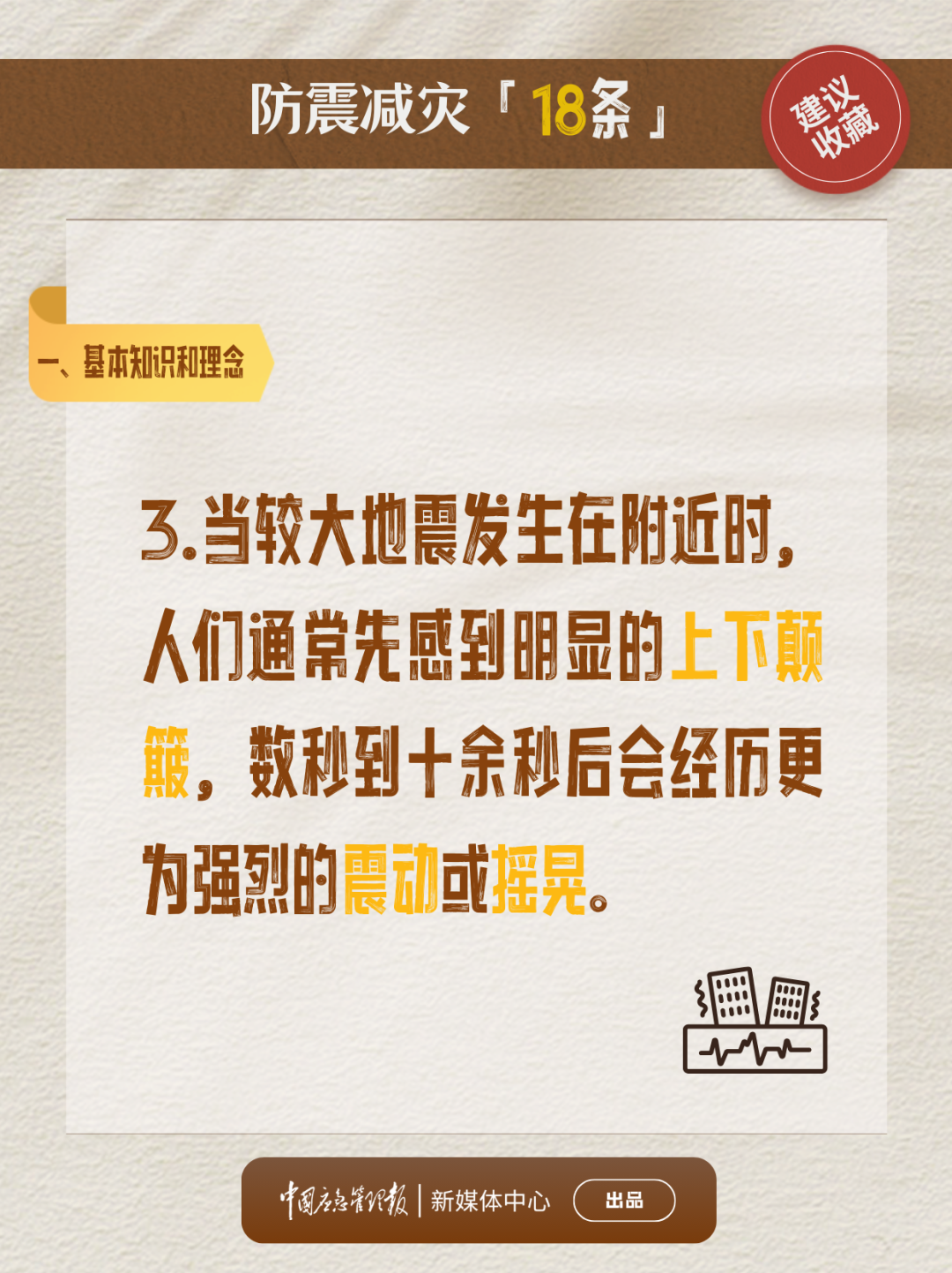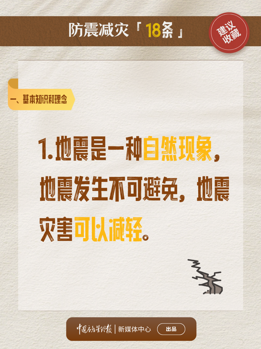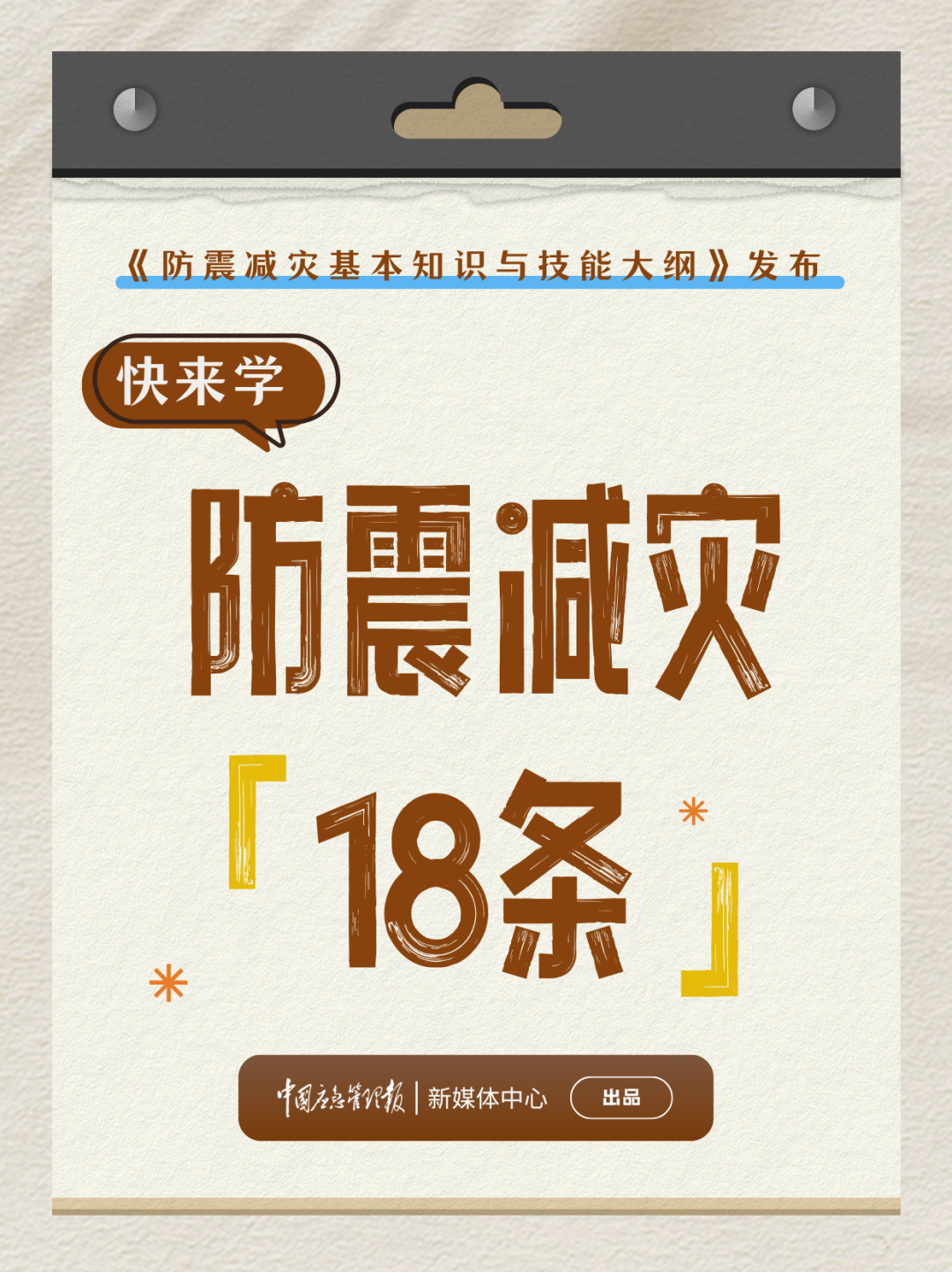 今年5月12日是第17个全国防灾减灾日,中国地震局发布《防震减灾基本知识与技能大纲》(简称“防震减灾18条”),旨在进一步提升全社会防震减灾能力,减轻地震灾害风险,保护人民生命财产安全,保障经济社会可持续发展。
