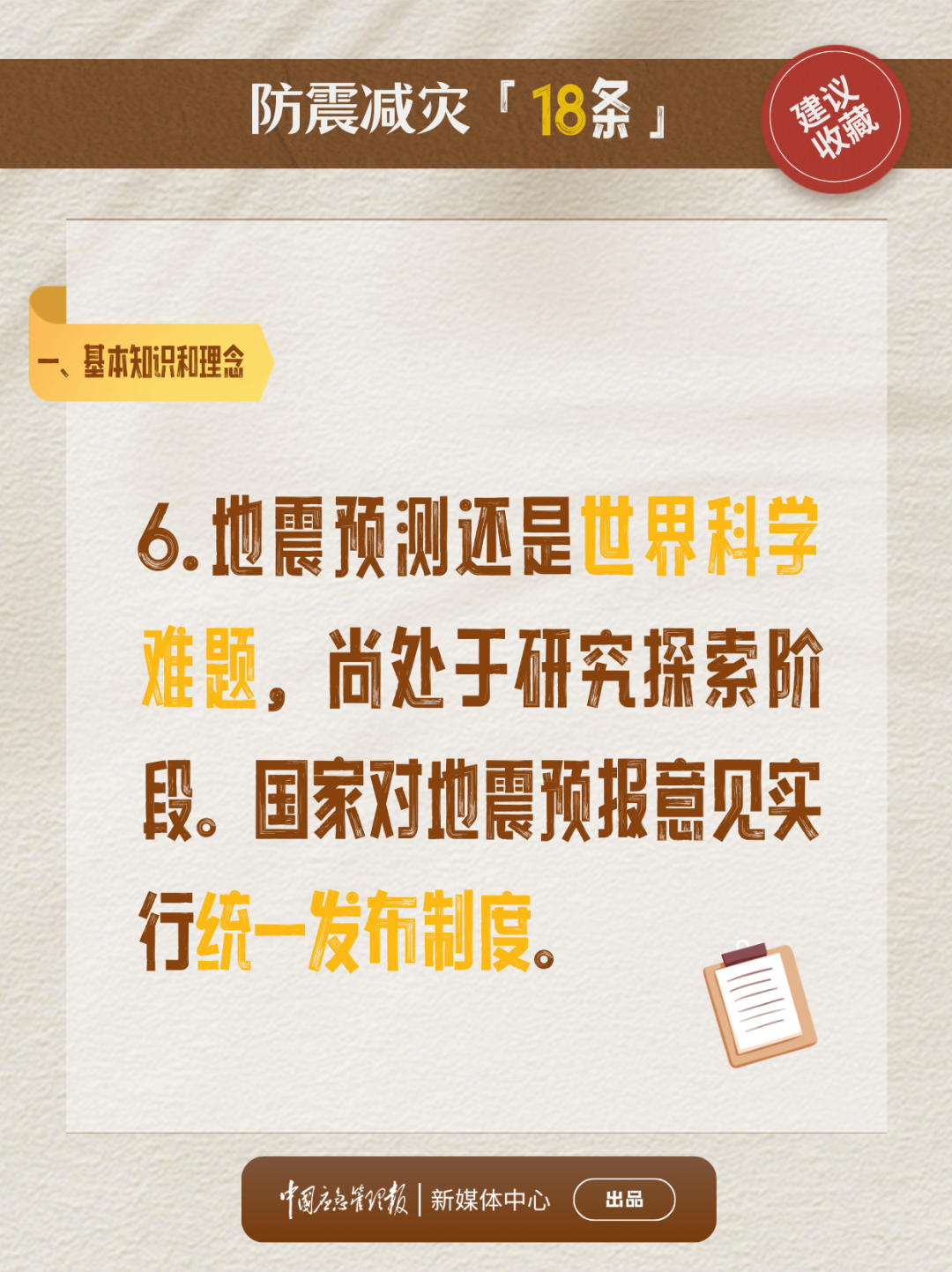 6.地震预测还是世界科学难题,尚处于研究探索阶段。国家对地震预报意见实行统一发布制度。
