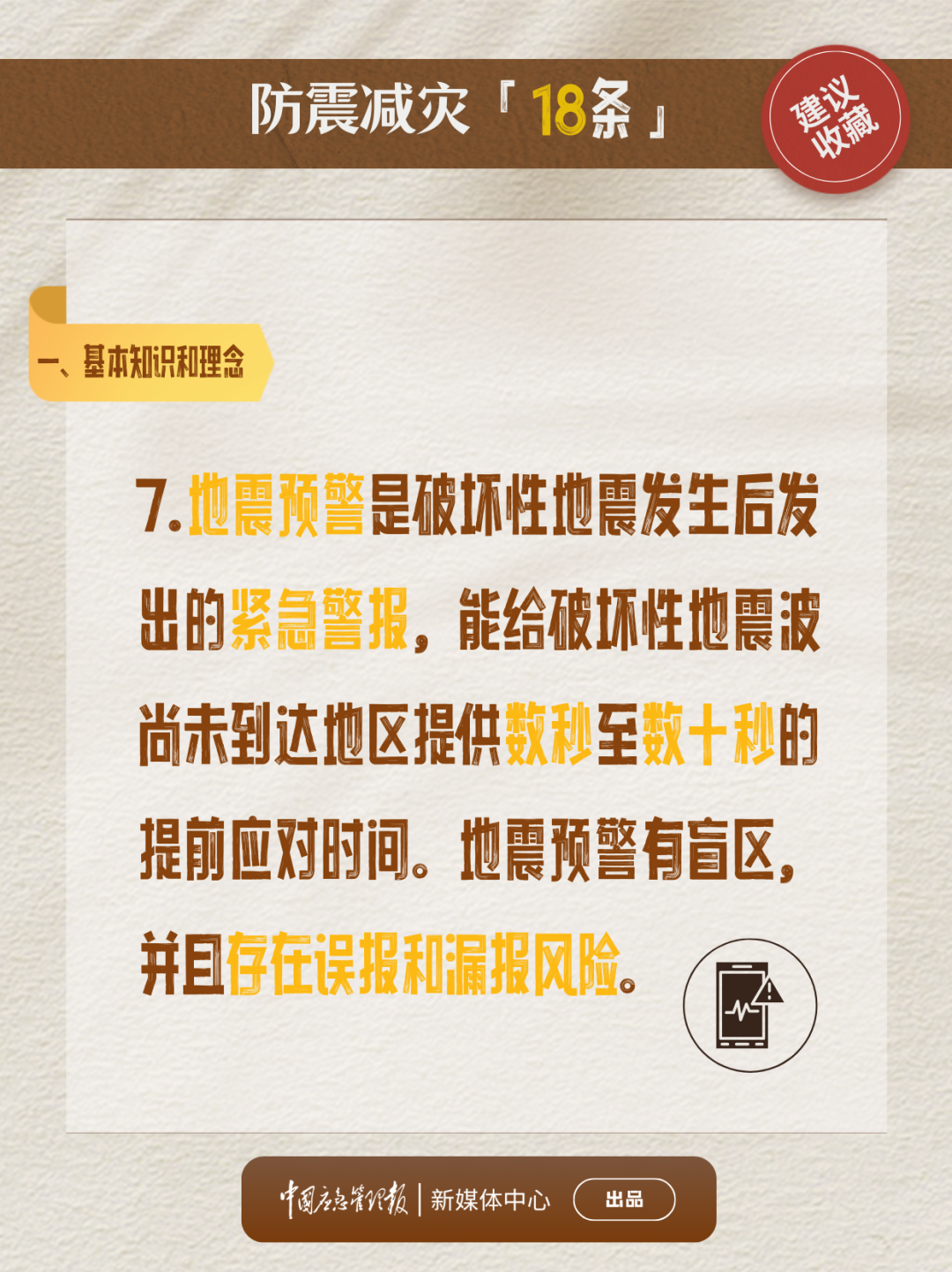 7.地震预警是破坏性地震发生后发出的紧急警报,能给破坏性地震波尚未到达地区提供数秒至数十秒的提前应对时间。地震预警有盲区,并且存在误报和漏报风险。