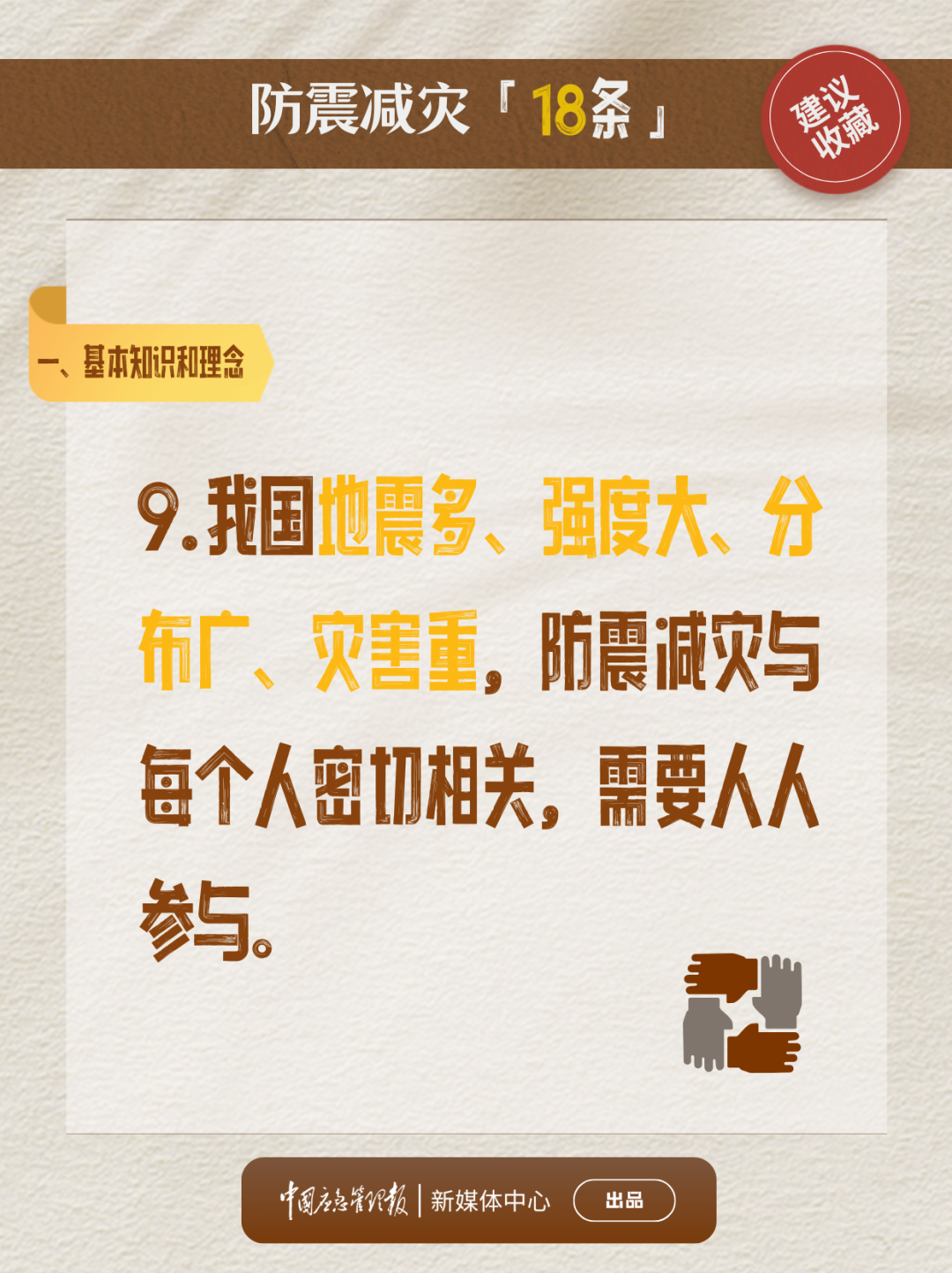 9.我国地震多、强度大、分布广、灾害重,防震减灾与每个人密切相关,需要人人参与。