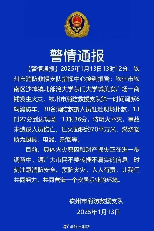 据广西钦州消防消息