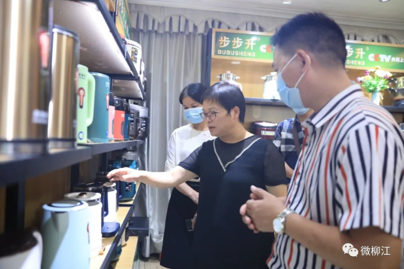 考察组先后来到湛江市广东创越电器、金利来电器、富田科技、江门市上海弘飞洗涤设备(广东基地)、中山市华政新能源中山销售分公司、众米科技共6家企业公司进行考察,本次考察对象主要是小家电及上下游配套企业。在各企业生产车间、产品展示厅,玉秋静详细了解企业生产运营、技术研发、业务领域、战略布局等情况,并与企业代表进行深入交流。