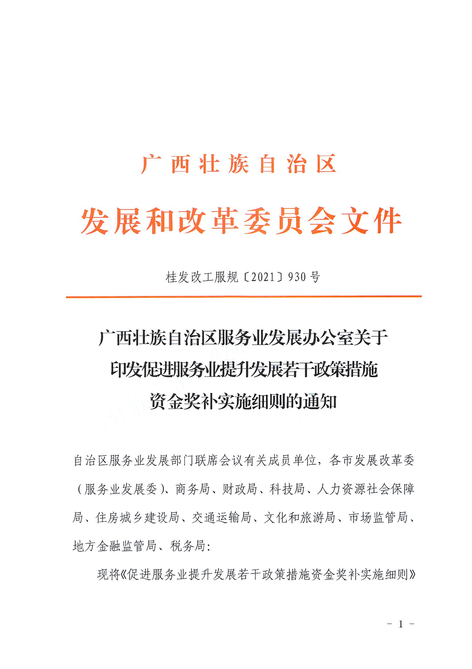 广西壮族自治区服务业发展办公室关于印发促进服务业提升发展若干政策措施资金奖补实施细则的通知
