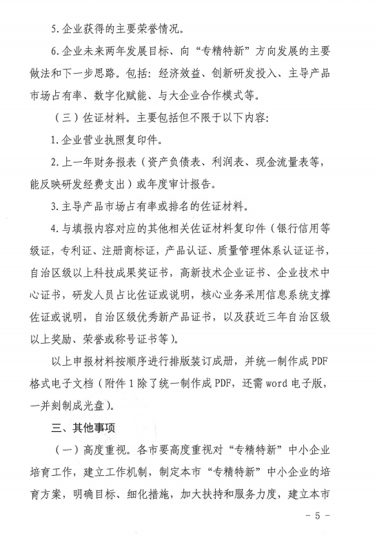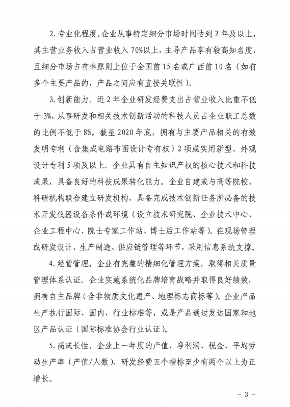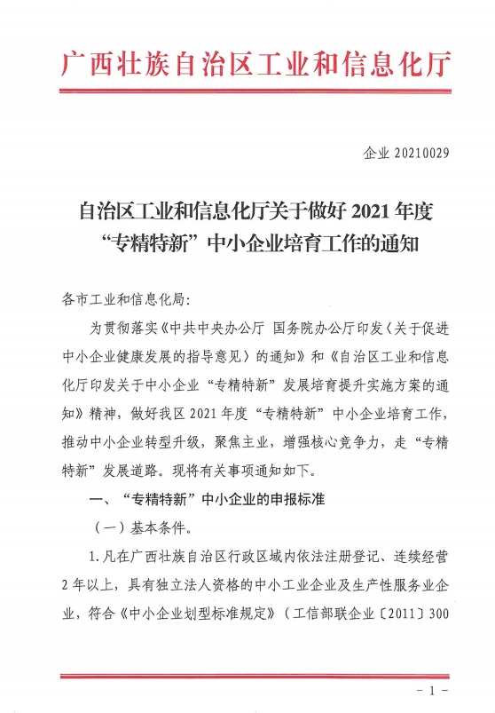 自治区工业和信息化厅关于做好2021年度“专精特新”中小企业培育工作的通知
