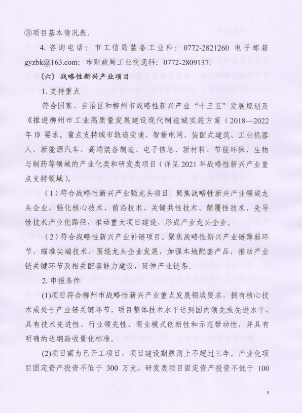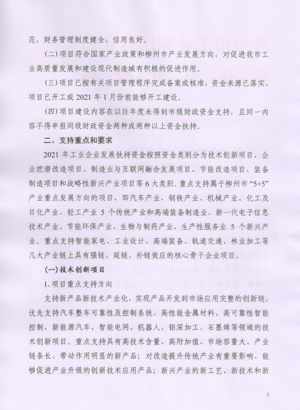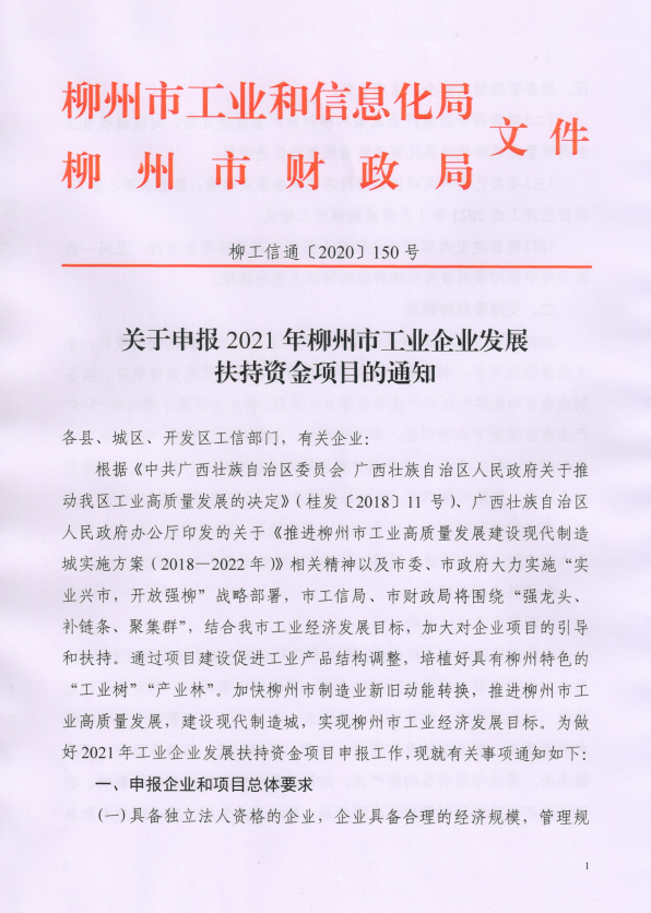 关于申报2021年柳州市工业企业发展扶持资金项目的通知