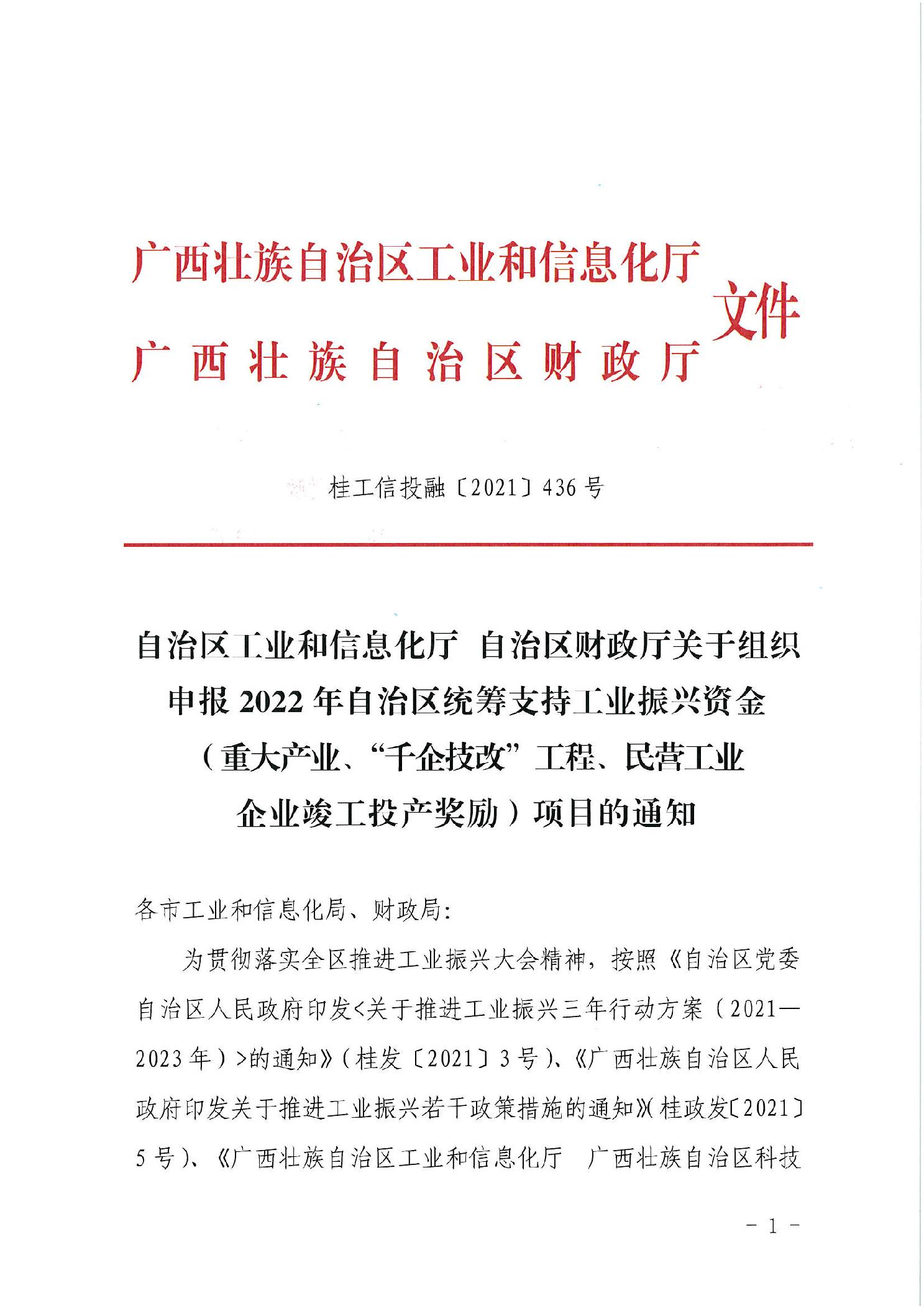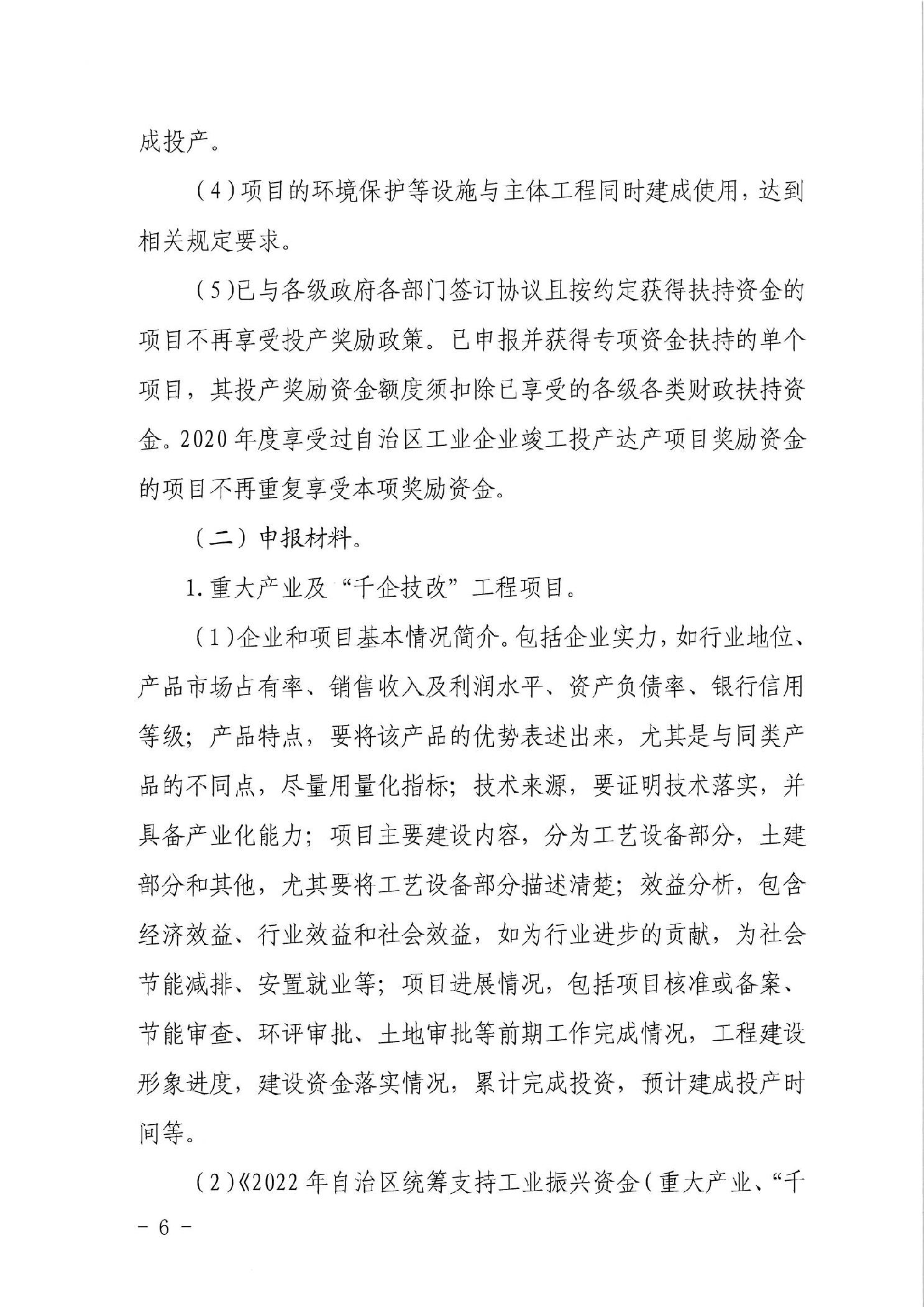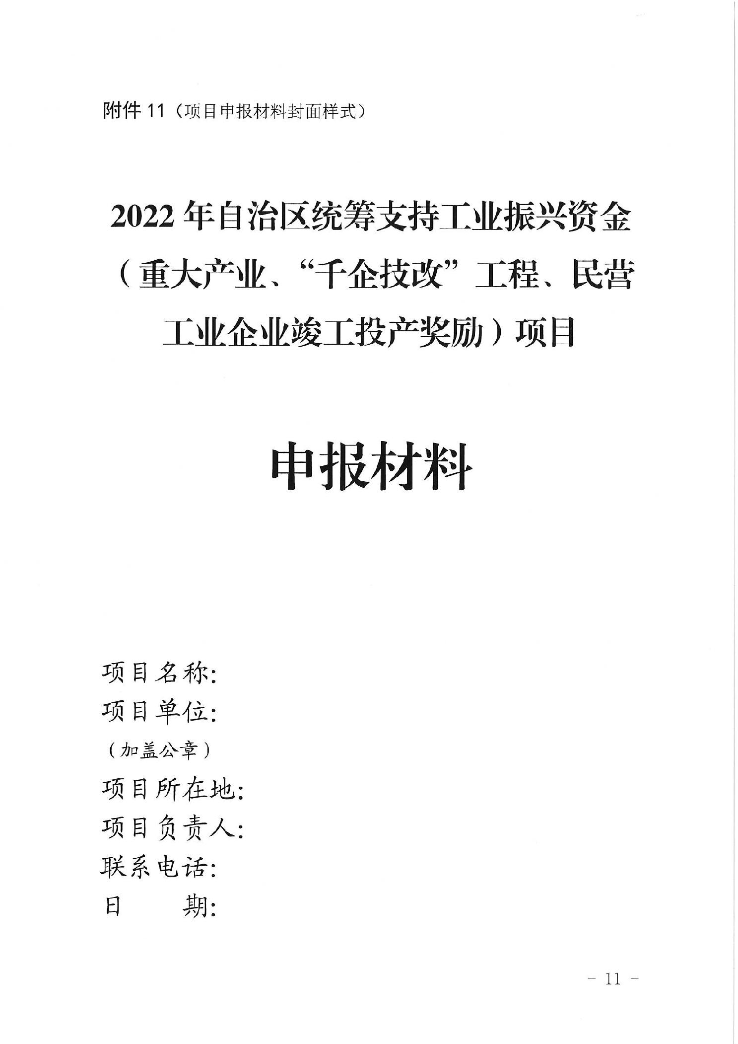 自治区工业和信息化厅 自治区财政厅关于组织申报2022年自治区统筹支持工业振兴资金(重大产业、“千企技改”工程、民营工业企业竣工投产奖励)项目的通知)