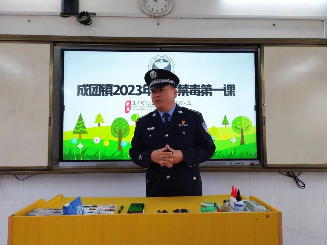 课堂上,成团派出所所长为大家作了一次慷慨激昂的开课致辞,细致讲解了中国近现代禁毒史、新型毒品种类、毒品危害等禁毒知识,打开了同学们向往知识的大门。