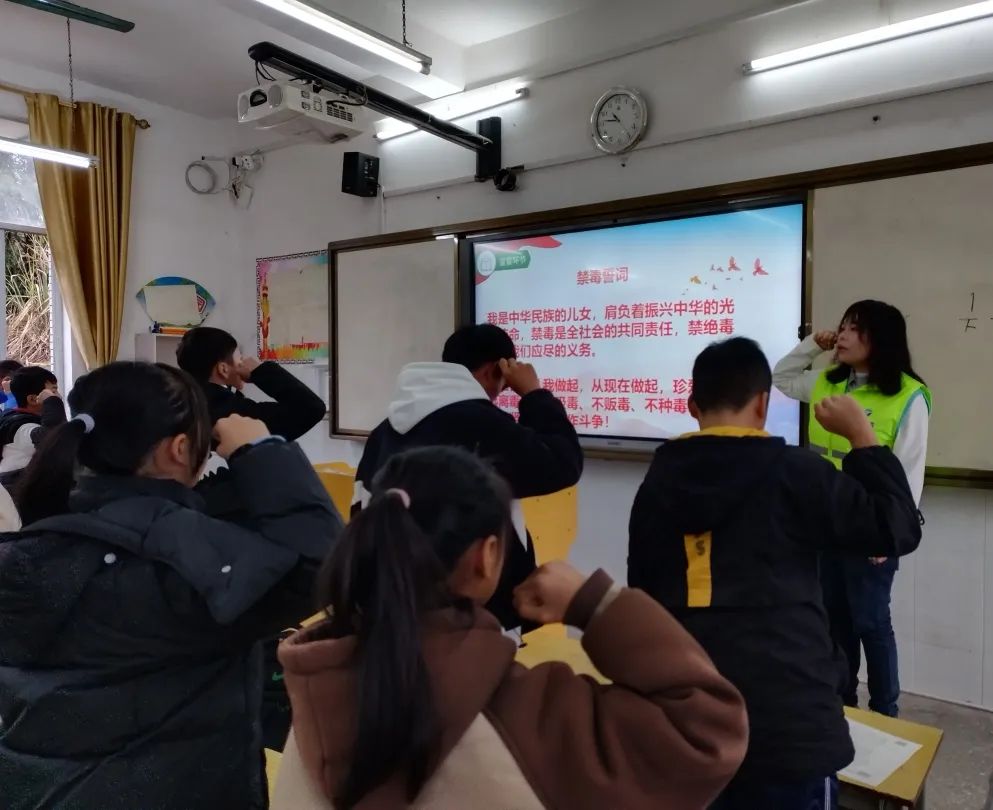 课堂最后,在禁毒社工的带领下,各族青少年进行了庄严的宣誓,铿锵有力的话语,表达了大家要像“石榴籽”一样紧密团结和争做青少年禁毒小卫士的决心。