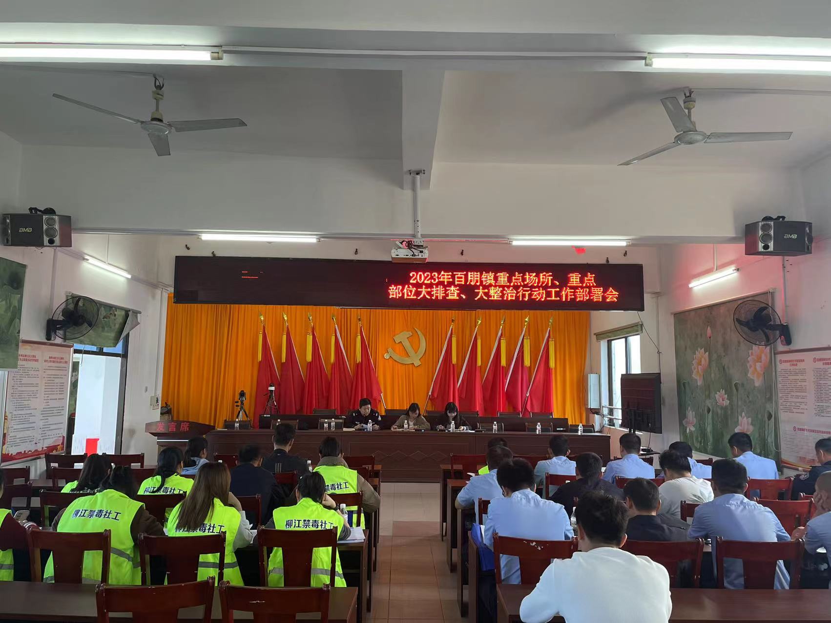 2023年4月12日以来,百朋镇政府组织百朋派出所、百朋市场监督管理所、镇禁毒办的负责人、民警、禁毒社工等40余人,联合开展重点场所、重点部位大排查、大整治专项行动。