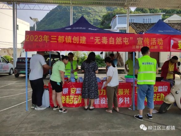 为进一步延伸拓展禁毒宣传工作的深度和广度,推进禁毒工作向基层纵深发展,提高人民群众对禁毒工作的知晓率和参与率,8月4日,三都镇禁毒办、综治办、关工委联合中国移动公司三都营业厅,在觉山村白塘屯开展了禁毒宣传“进村屯”活动。