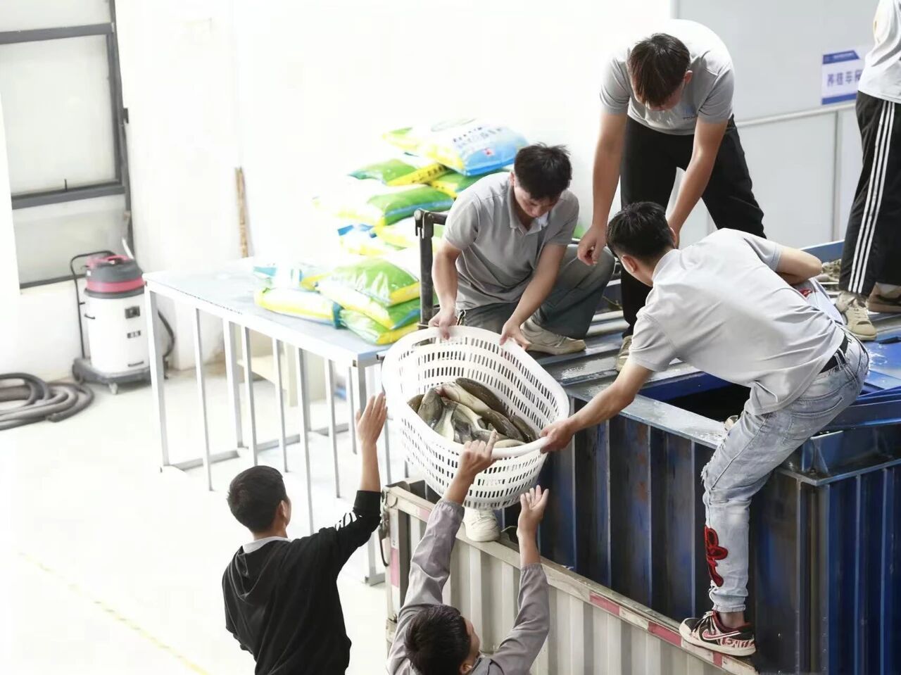 与此同时,广西华芯数智科技有限公司现代循环水渔业养殖基地现场一片火热景象,一尾尾健硕的鲈鱼跃出水面,一筐筐鱼被搬上秤称重,货车正等待将鱼运往各大市场。这批鱼苗自6月中旬投放以来,历经4个月科学培育,如今顺利迎来首次出鱼。为严守成鱼安全与品质底线,基地全程实施精细化管理,从养殖过程水质实时调控,到成鱼抽样检测,每一个环节均严格把关。目前,首批成鱼抽检已完成,实现“零药残、零抗、零寄生虫”的渔品“三零标准”。