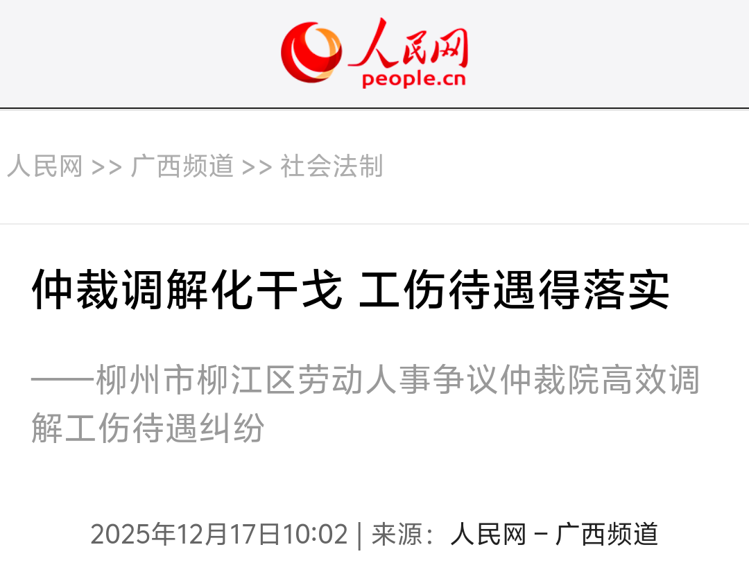 这起案件的圆满解决,只是柳江区仲裁院高效调解工作的一个缩影。2025年来,柳江区仲裁委始终将调解贯穿于劳动争议处理的全过程,不断创新调解方式方法,提升调解工作水平,努力降低劳动者维权成本,也避免了用人单位陷入长期的纠纷和诉讼中。据统计,2025年1月至9月,柳州市柳江区劳动人事争议仲裁部门处理案件892件,结案876件,正在处理16件,结案率98.21%。其中,调解案件788件,裁决案件81起,调解率88.34%。
