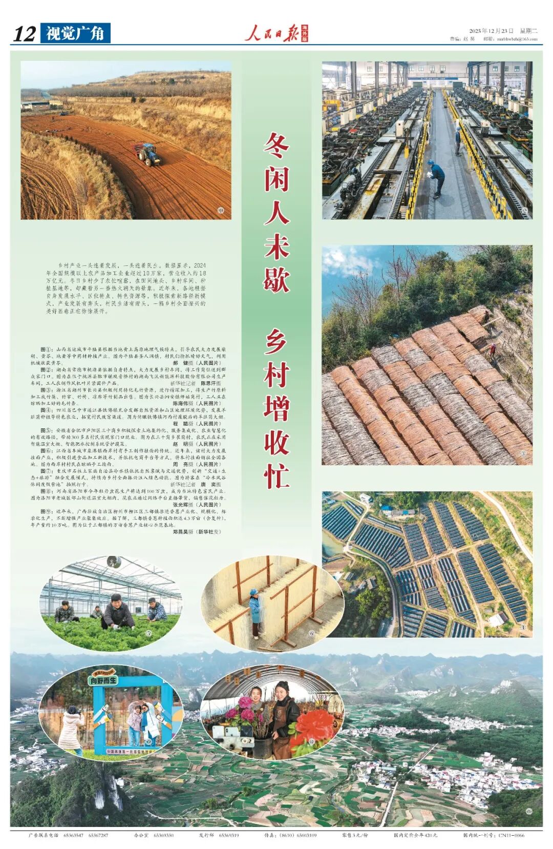 乡村产业一头连着发展,一头连着民生。数据显示,2024年全国规模以上农产品加工企业超过10万家,营业收入约18万亿元。冬日乡村少了农忙喧嚣,在田间地头、乡村车间、种植基地等,却藏着另一番热火朝天的景象。近年来,各地根据自身发展水平、区位特点、特色资源等,积极探索新路径新模式,产业发展有奔头,村民生活有甜头,一幅乡村全面振兴的美好画卷正在徐徐展开。