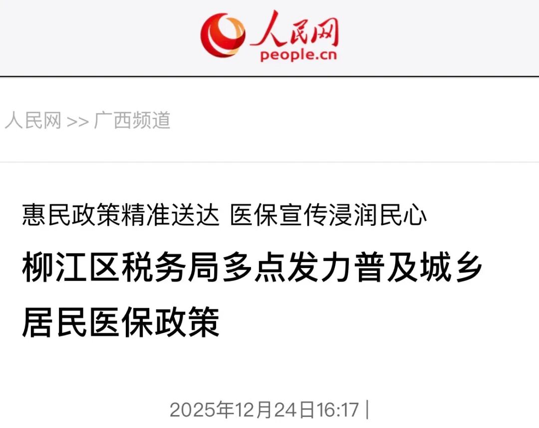 为全面落实城乡居民医疗保险政策,柳州市柳江区税务局开展税收宣传进乡村、进社区、进校园等系列活动,通过“乡音解读+案例教学+实操指导”的多样化形式,切实织密织牢民生保障网络。