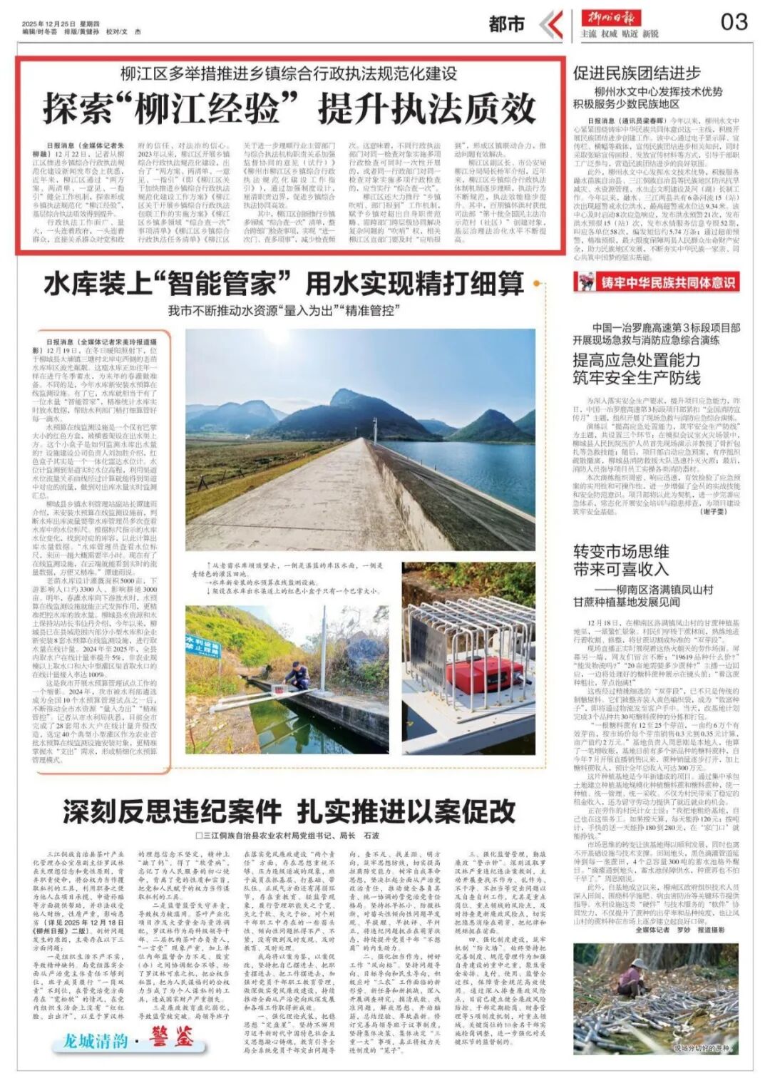 柳江区改革创新活力持续迸发,备受媒体广泛关注。《人民日报》海外版、新华社、人民网、广西云、平安广西网、南国今报APP、《柳州日报》《柳州新闻》等媒体平台集中报道、深度挖掘,营造干事创业浓厚氛围。围绕特色产业聚集、项目建设火热、政务服务温度以及行政执法建设等方面,全方位展现柳江产业筑基、创新驱动、民生提质的坚实步伐,凝聚跨越式发展的昂扬士气。相关重点稿件,让我们一同回顾。