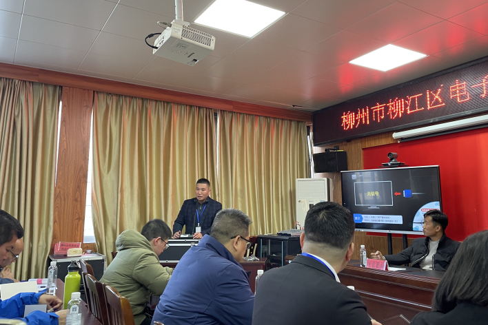 顾方在柳江区电子商务协会会员大会上发言。