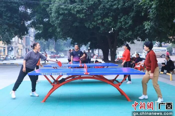 民众在打乒乓球。