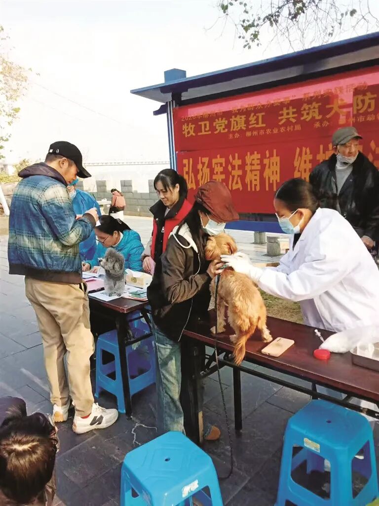 与农村上门服务模式不同,我市城区则通过社区定点展开。“看到社区发布的通知,我就赶紧带它来免费接种。”1月22日上午,柳南区柳南街道红光社区居民张洁云带着爱犬前来接种疫苗。柳北区、鱼峰区、城中区等多个城区也通过多种方式宣传政策。