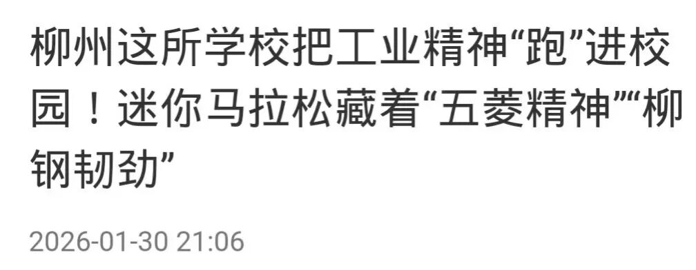柳州是工业重镇,为了让师生深刻理解柳州工业精神,1月29日下午,柳江中学在校园内举行了一场“奔跑新征程·建功十五五”——柳州工业精神薪火相传校园迷你马拉松活动。
