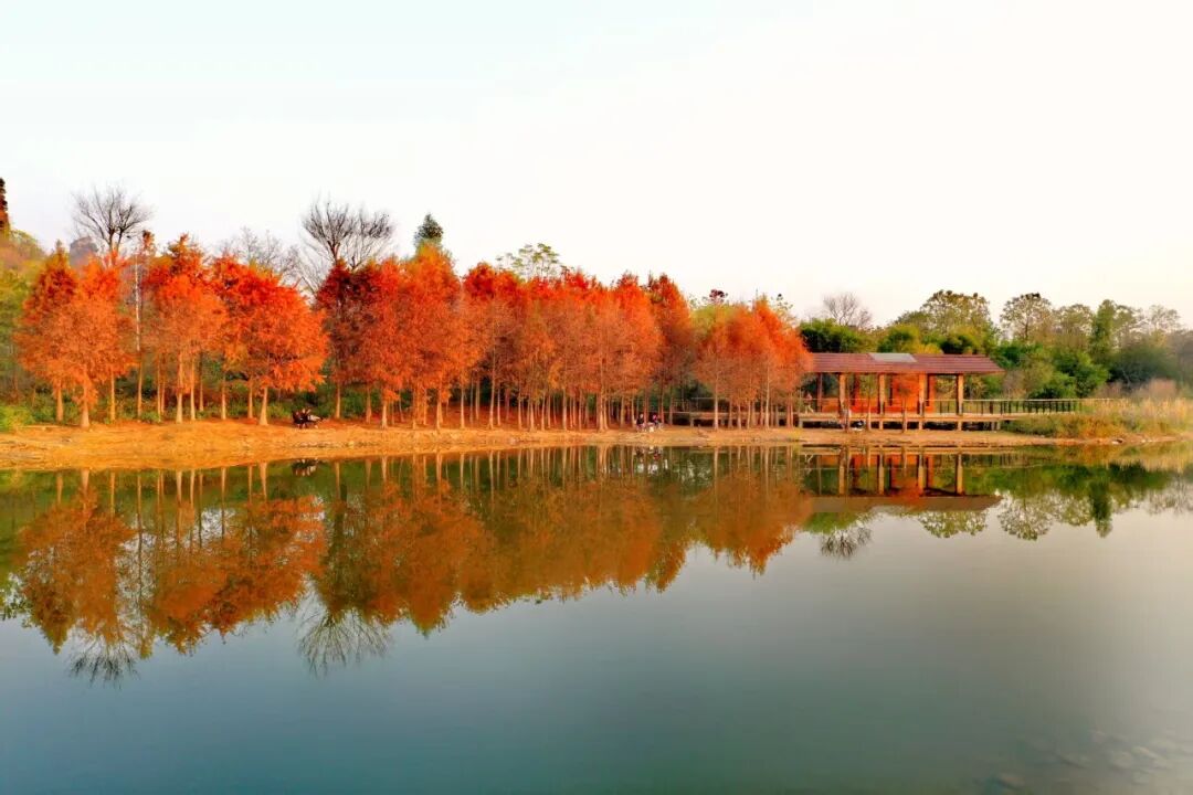 晨霜奔跑、水杉如画、午后沐阳,柳江新城冬景如诗
