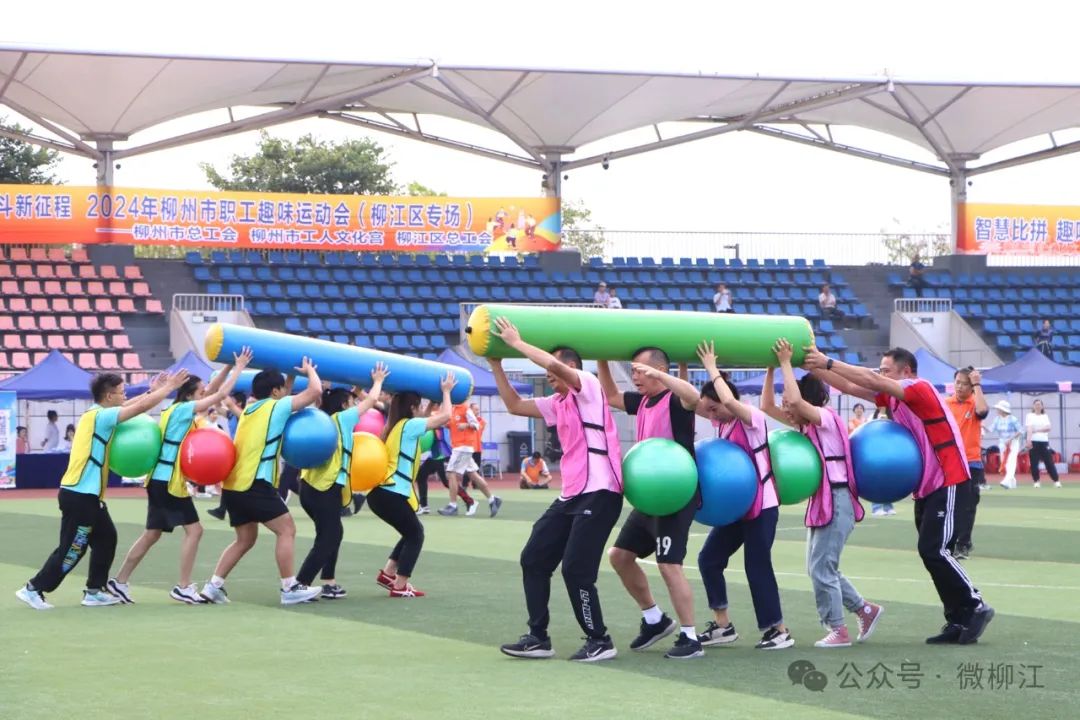 11月16日,2024年柳州市职工趣味运动会(柳江区专场),在区体育园足球场举行,全区32支代表队近400名职工参加比赛。