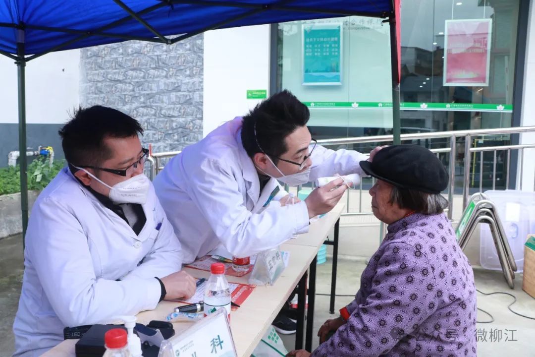3月19日,“暖心三月学雷锋,爱心义诊送健康”活动,在柳江区成团镇农村信用社前停车场举行。