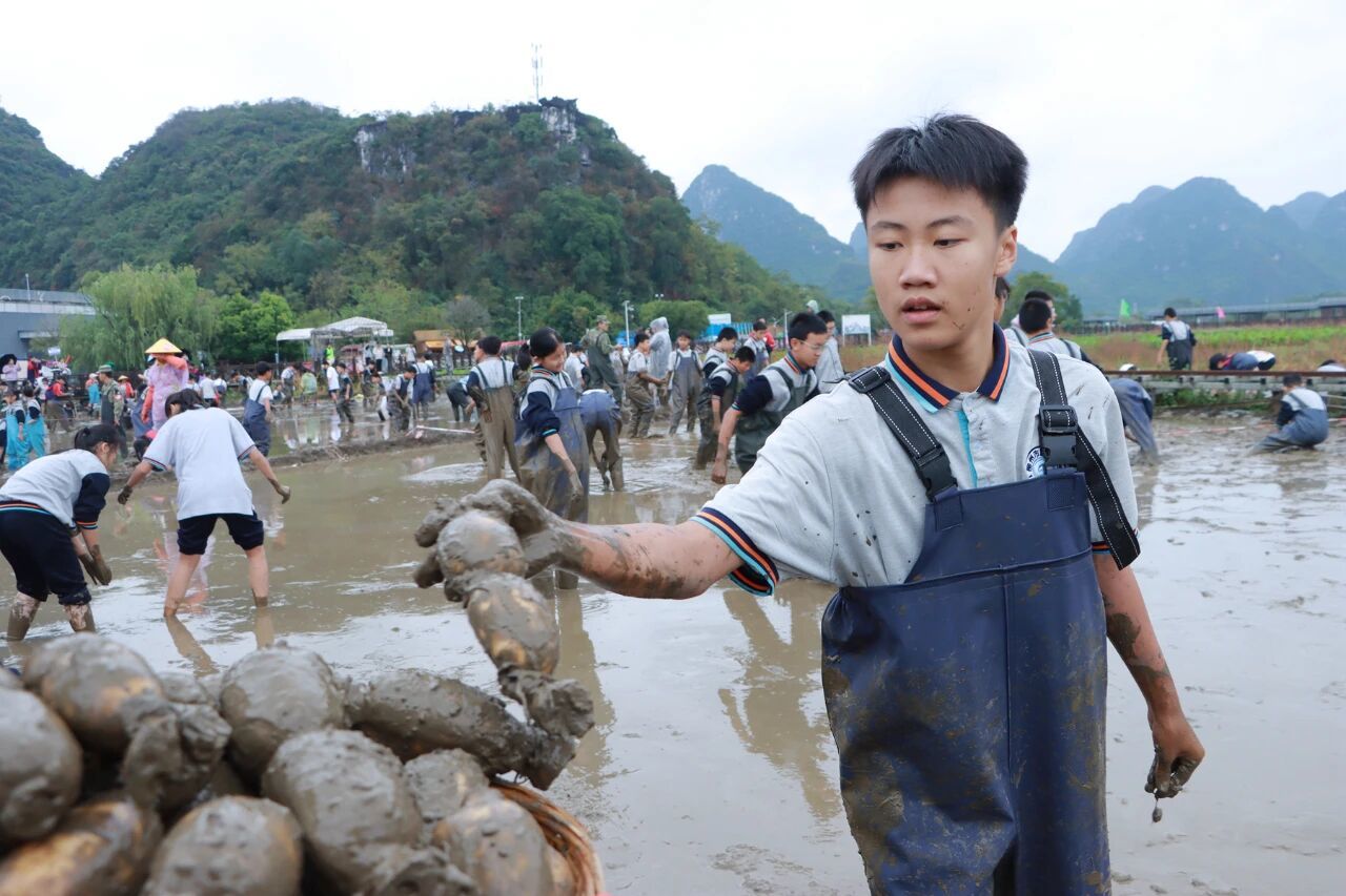 11月3日,柳江区百朋荷苑景区迎来一群朝气蓬勃的“体验官”,柳州市航鹰中学537名学生走进这里,开展“荷你藕遇 劳动教育研学”主题研学活动。同学们行走于泥泞田垄间,亲身体验挖藕乐趣,探索水生植物生长奥秘,在劳动实践中收获知识与喜悦。