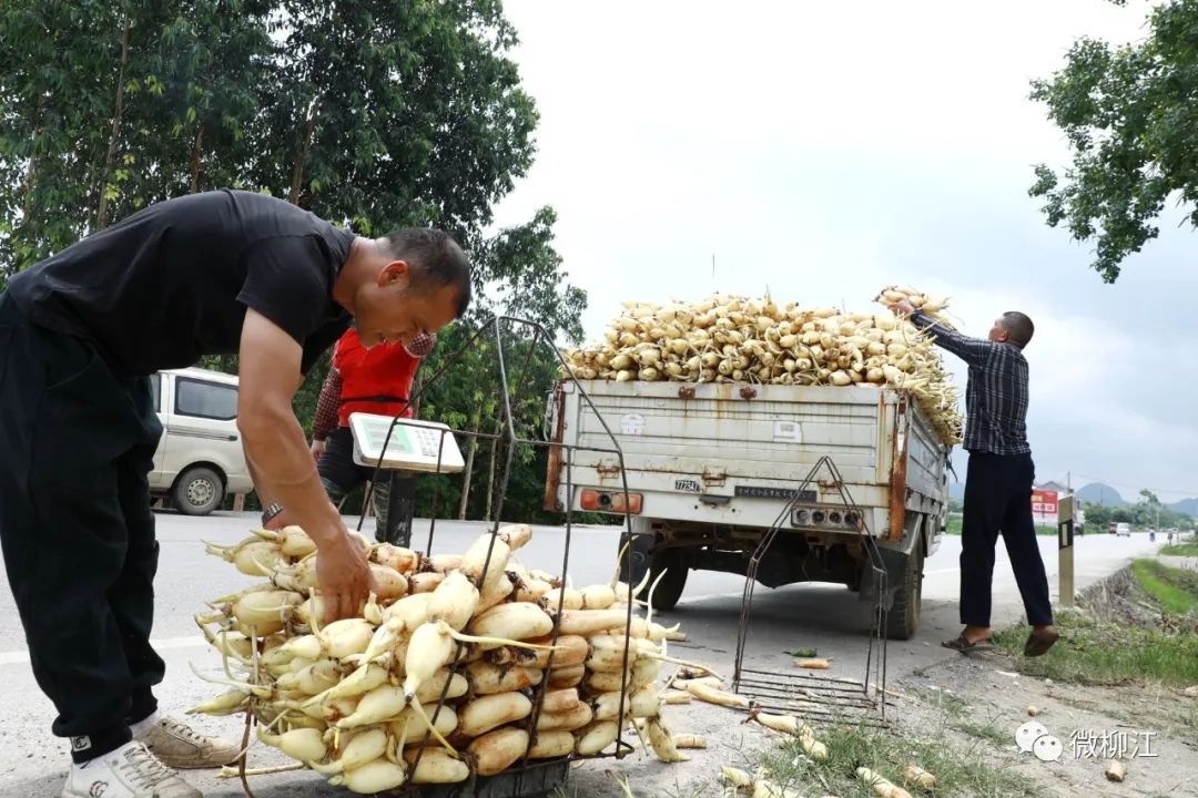 今年,百朋镇春藕种植面积为2.1万亩,其产品洁白如玉,有着“玉藕”的美誉,深受市场青睐,经莲藕“经纪人”统一收购后,这些玉藕将被销往全国各地并实现出口。在大型洗藕场的收购站点,藕农们陆续将一车车新鲜采挖上来的玉藕过秤、清洗、打包、精包装,莲藕产业已成为促进当地“产业兴旺”的当家产业。“今天这批玉藕是发往河南郑州的,大概有2万斤,接下来我们还将继续收购,把百朋玉藕销售到全国各地。”莲藕“经纪人”覃宏显一边把关洗藕场里的玉藕品质一边说道。