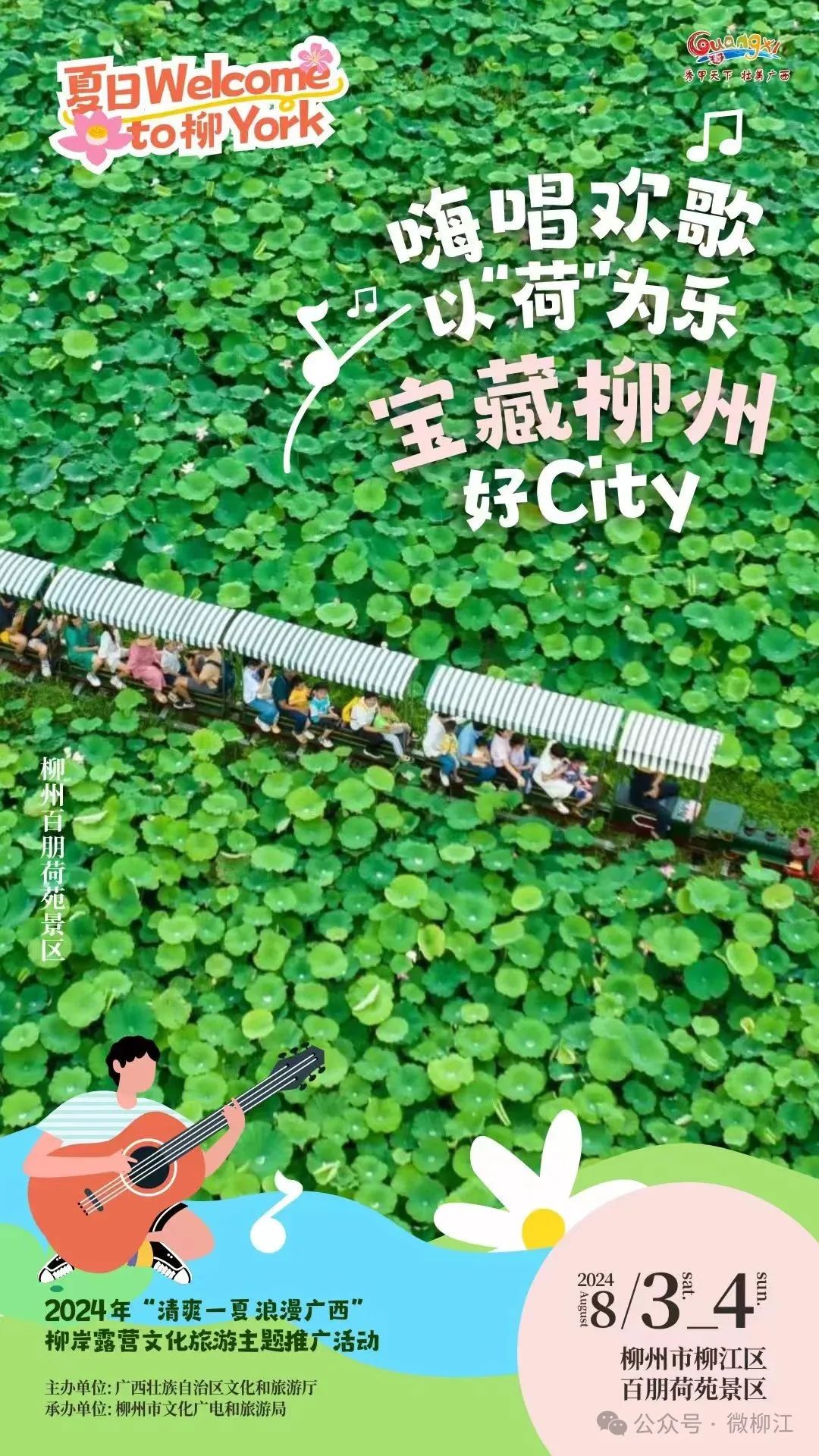 8月3日,“清爽一夏 浪漫广西”柳岸露营文化旅游主题推广活动,在柳州市柳江区百朋荷苑景区举行。自治区文旅厅宣传推广处处长叶平、四级调研员杨琛,柳州市文化广电和旅游局局长刘莉、副局长莫宇清,柳江区委常委、宣传部部长黄馨出席活动。