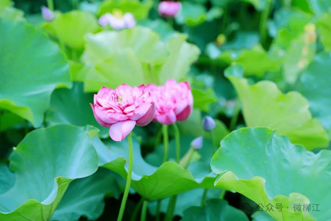 步入百朋荷苑景区,层层叠叠、碧绿如洗的荷叶与悄然绽放、亭亭玉立的荷花映入眼帘,荷叶舒展如伞,织起一片绿意海洋,荷花盛开如盘,透出淡淡的粉红,描绘出一幅生机盎然的画卷。微风拂过,荷香四溢,沁人心脾。