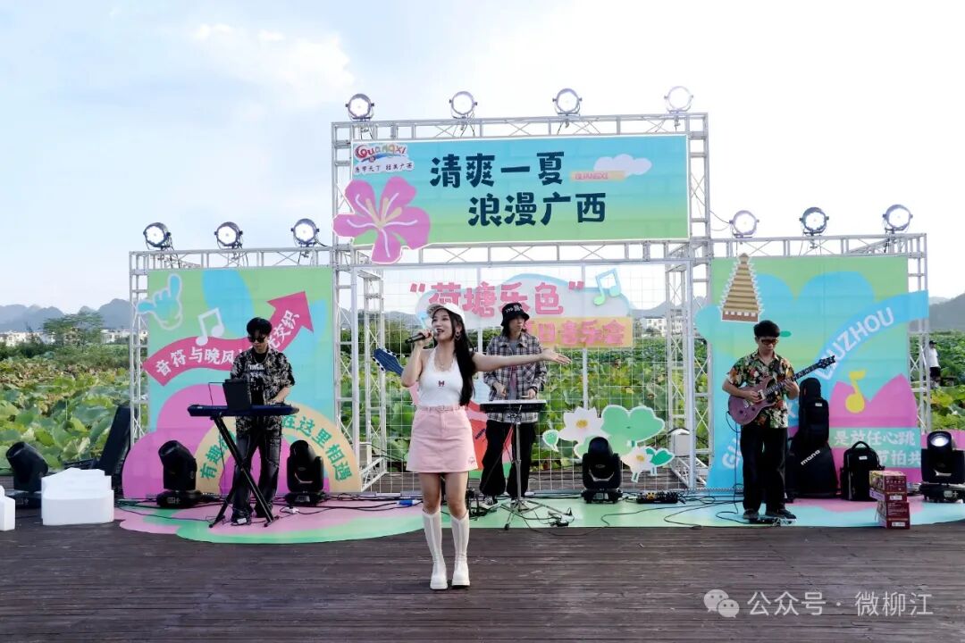 “这里的风景非常优美,荷叶连绵起伏,在景区里面散步让人心旷神怡。我们还带小朋友坐了小火车,很开心。去年我们也来这里赏花,荷花特别漂亮,我们拍了很多照片,印象非常深刻。”来自河南的游客高晓雯开心地说。今年6月,正值荷花季,“万人团游荷美柳江”首批游客开启“山水相映,荷美柳江”之旅,在百朋荷苑景区游玩“打卡”,一波波游客让景区旅游持续升温。