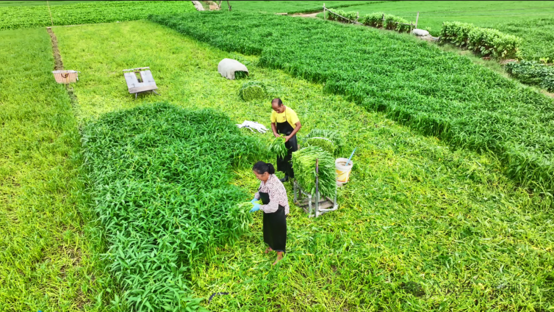 “我种植空心菜十几年了,管护容易,产量可观,目前收购价每斤1元左右。”基隆村陈家屯种植户陈正奎一边收割,一边笑着介绍,随着柳州螺蛳粉产业日益红火,作为螺蛳粉重要配菜的空心菜,凭借脆嫩爽口的口感深受消费者喜爱,销路完全不用愁。