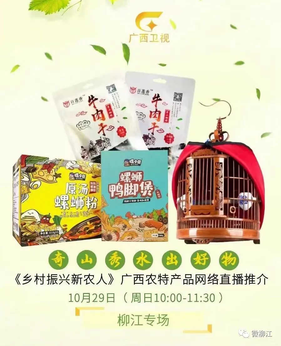 据了解,此次网络直播推介的产品有螺小匠螺蛳粉和鸭脚煲、百香缤百香果汁饮料、古岭神酒、百莲香牛肉干、九品香水莲花茶、非遗竹编鸟笼等7种柳江农特产品。通过此次网络直播推介,既能把柳江农特产品销售出去,提高村民收入,又能进一步提升柳江农特产品的知名度和品牌影响力。