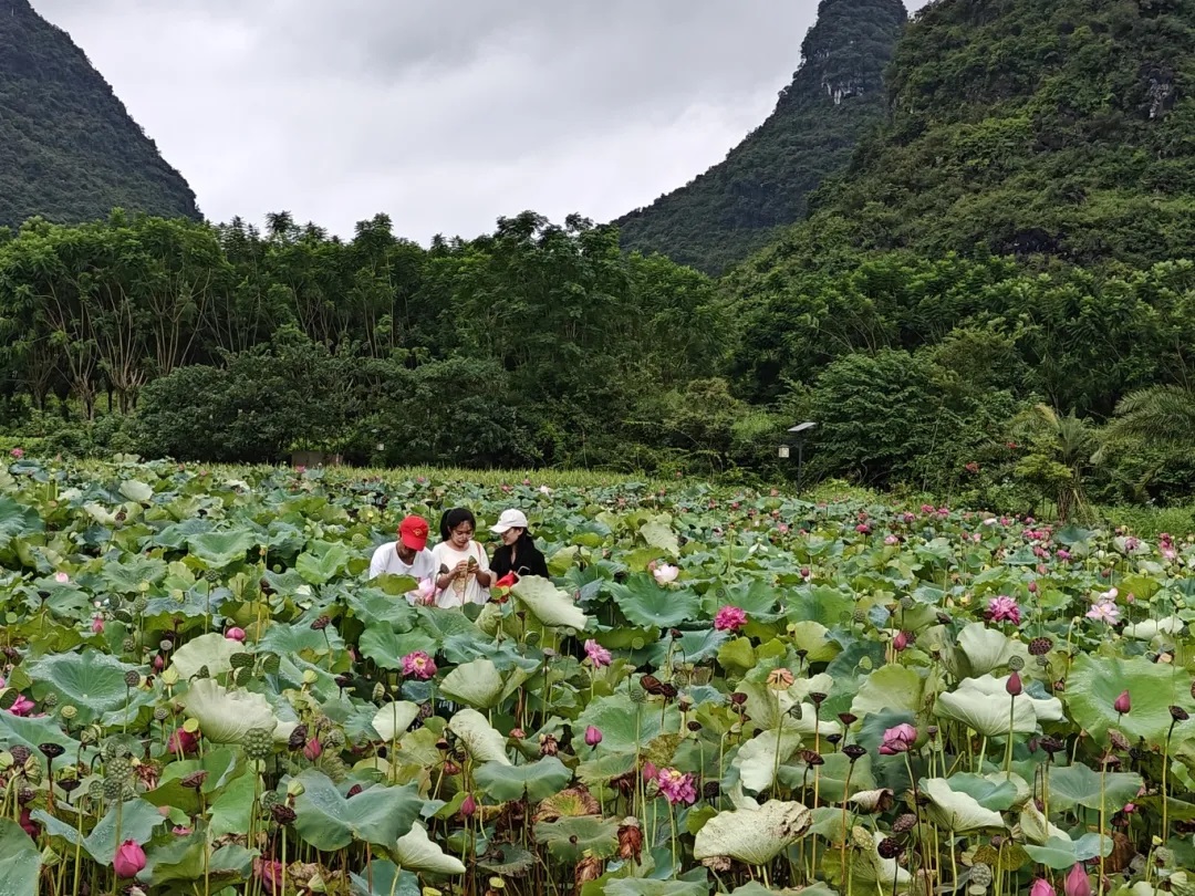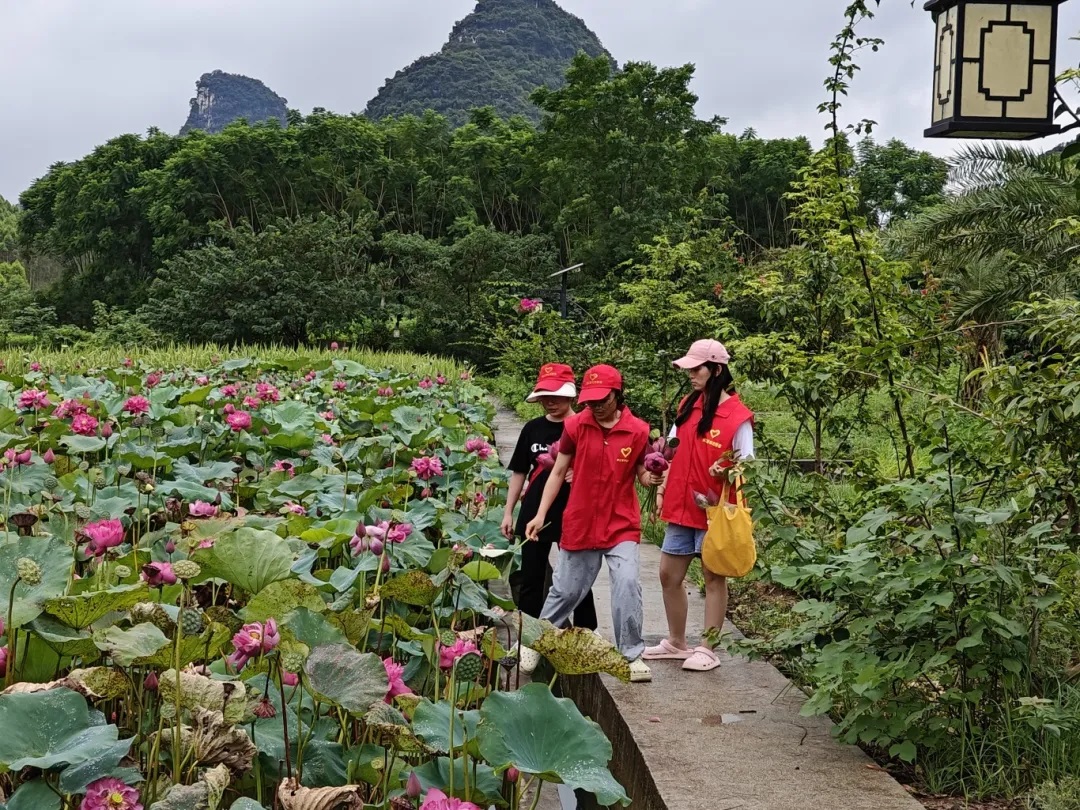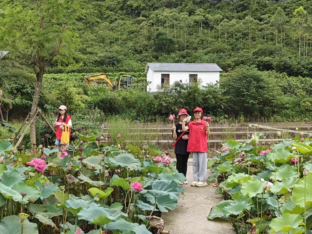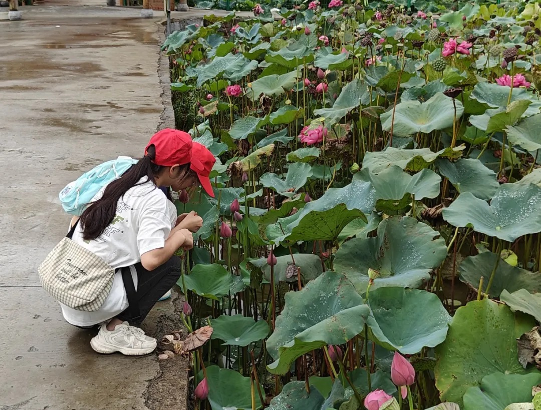 同学们也没有错过欣赏美丽的荷花