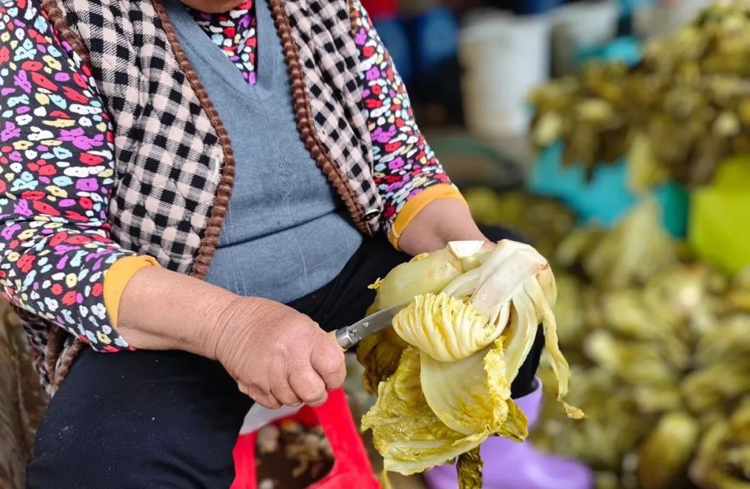 正因为家家有水咸菜,所以烹饪水咸菜也成为木罗村民的必备技能,清炒咸菜、肉末炒咸菜、咸菜煮鱼、咸菜馅包子、咸菜打火锅,不论何种做法都咸香四溢,回味无穷。