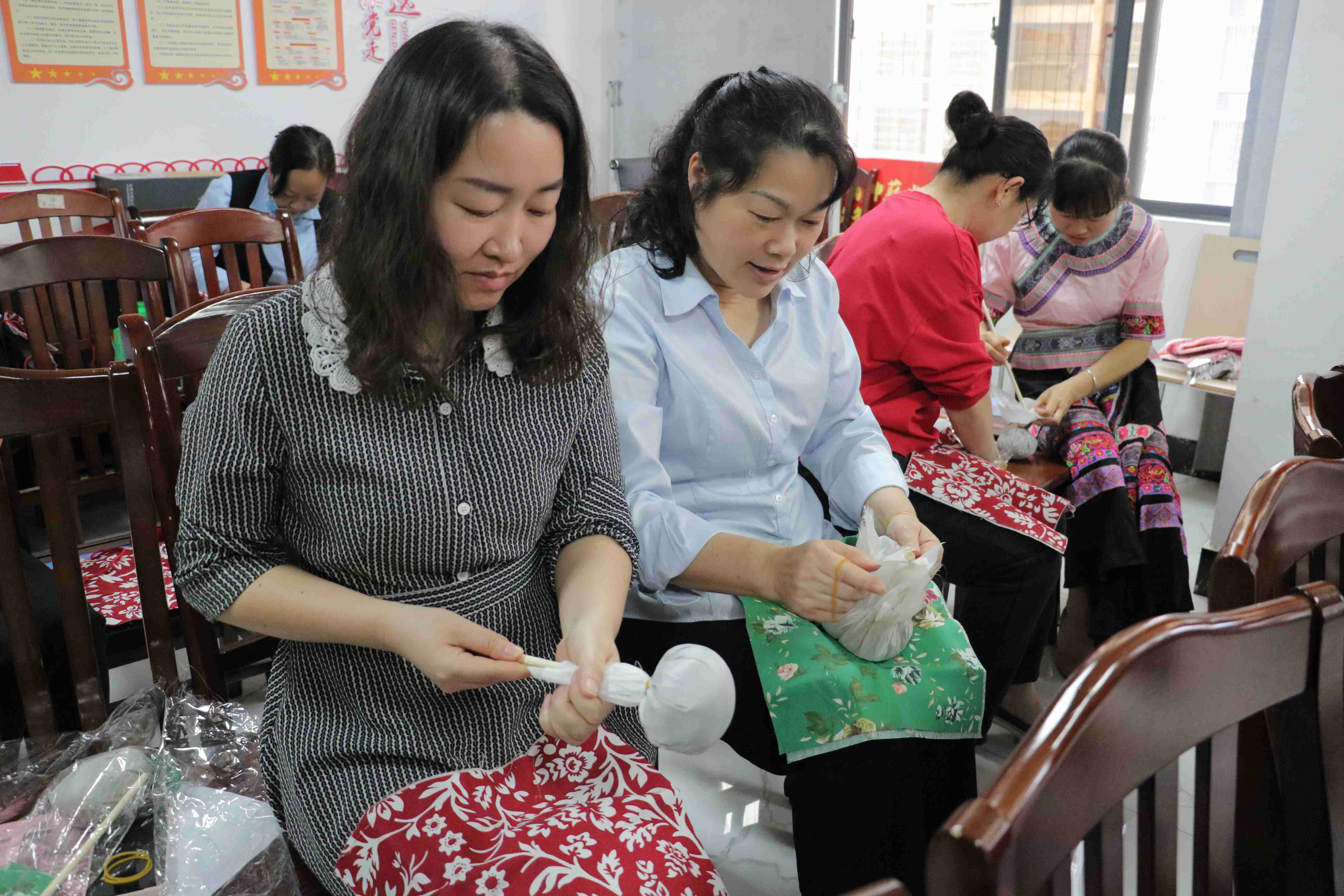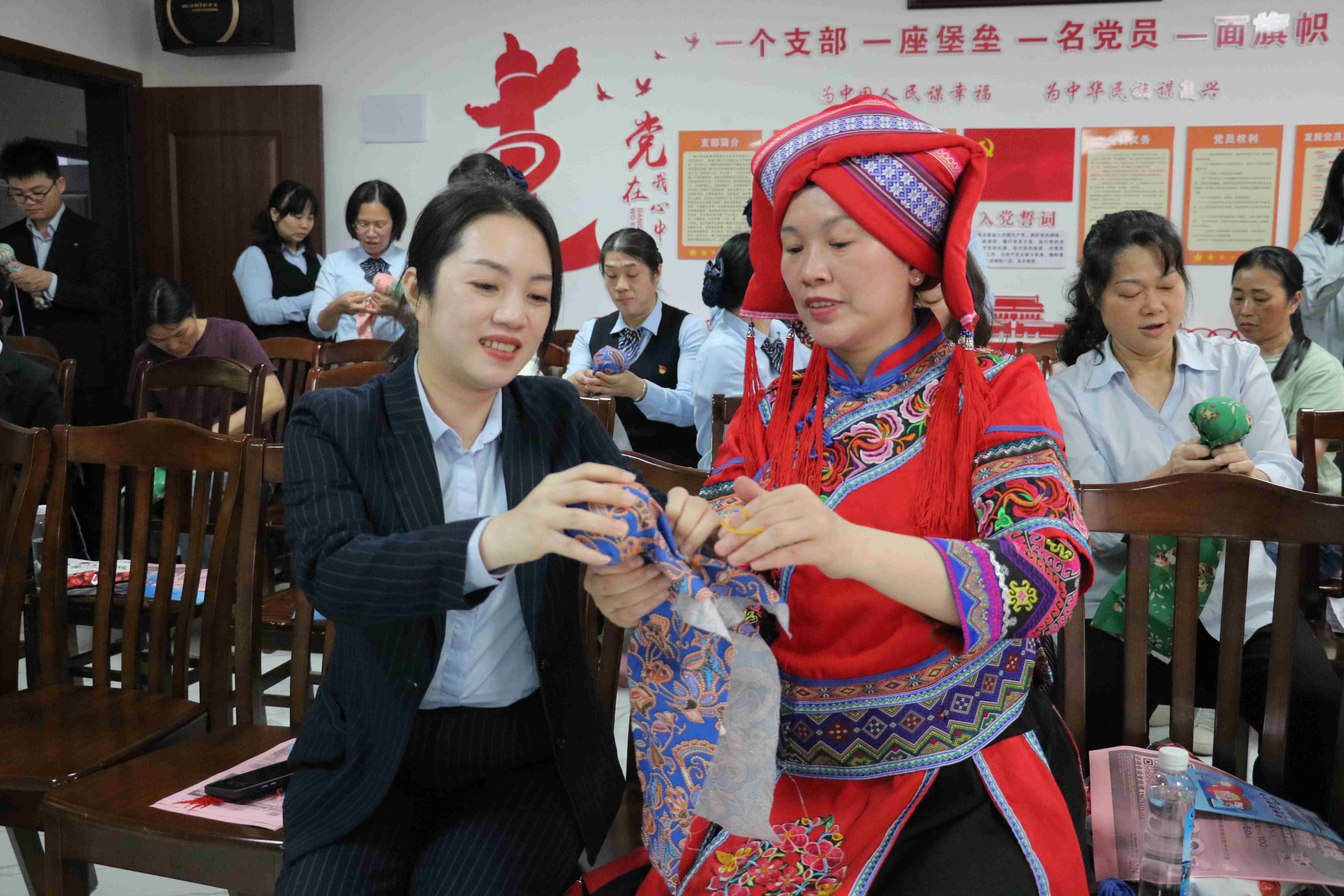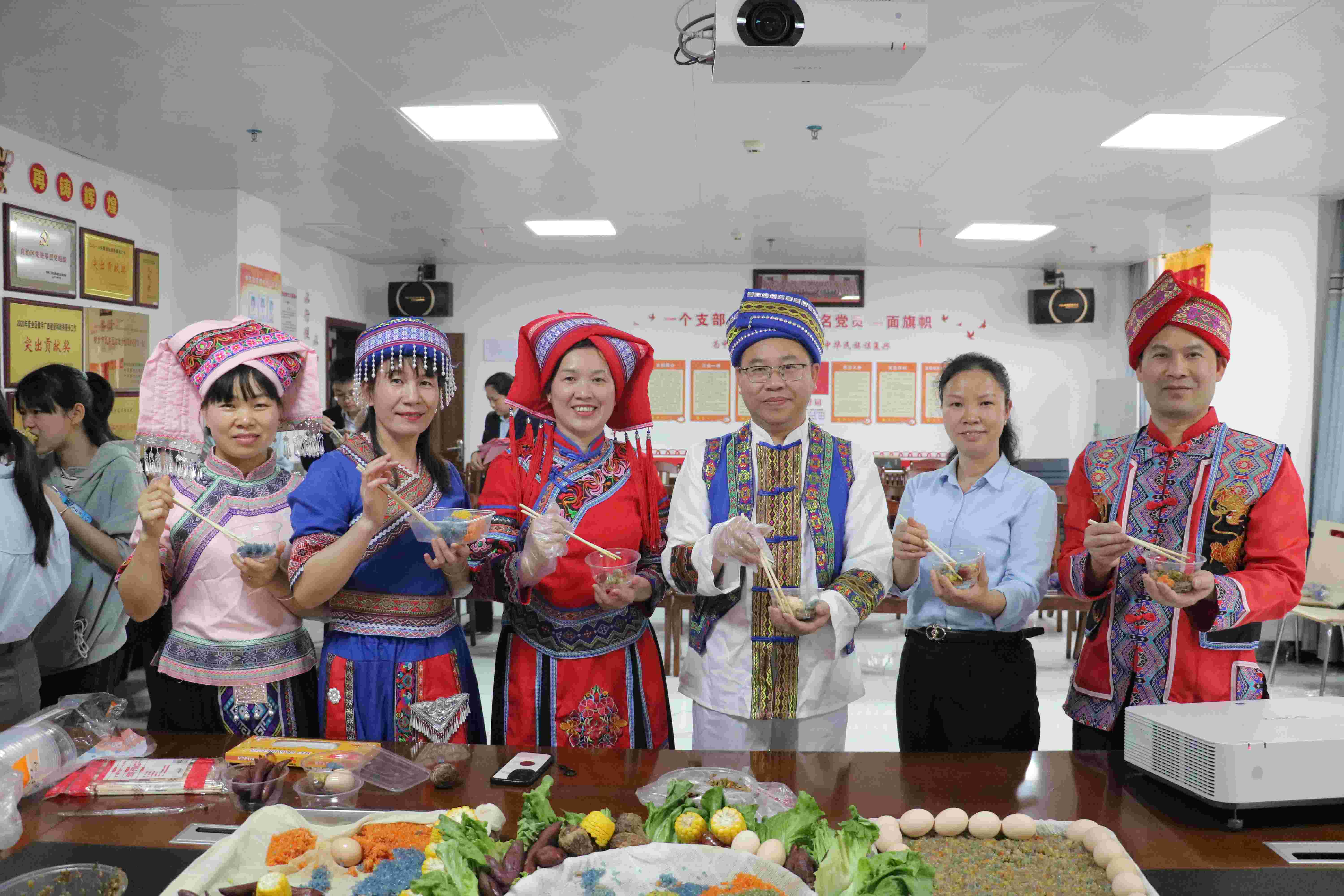 在淡淡的艾草清香中,制作非遗艾草养生锤,传统智慧随轻敲肩颈的动作流淌心间。五色糯米饭承载"美美与共"的深意,唇齿留香间,各族职工畅聊家乡习俗,共绘民族交融画卷。