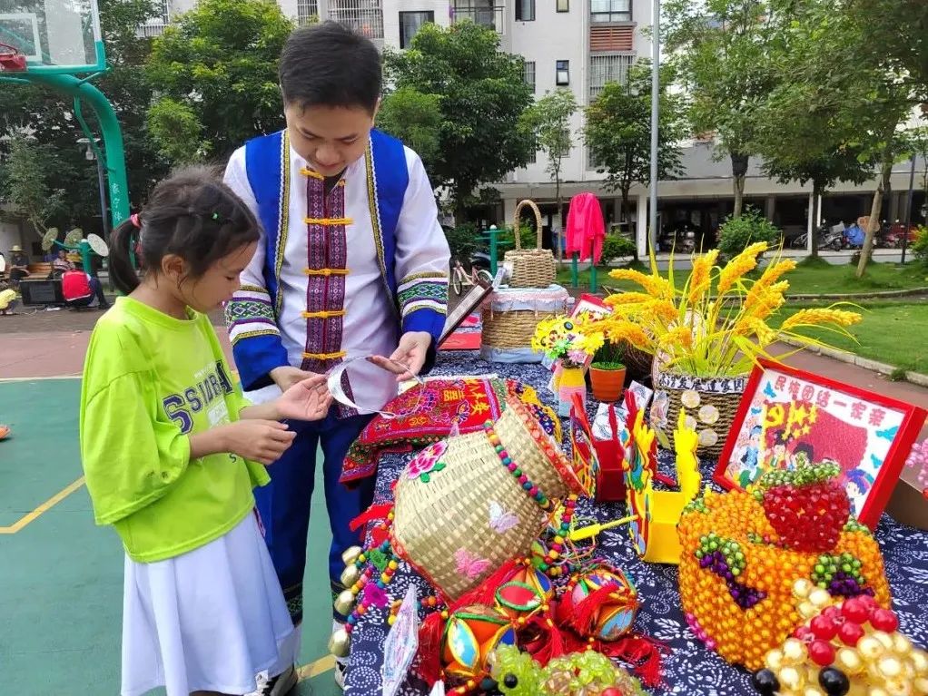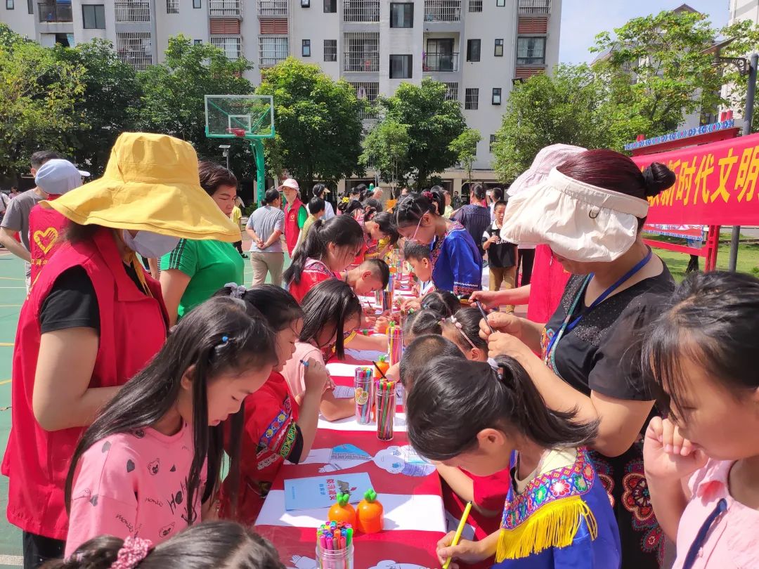 6月1日,拉堡镇2022年民族团结进步创建主题活动在易地扶贫搬迁安置点兴柳社区老乡家园举行。现场展出了别出心裁的非遗手工艺品,精美的民族团结作品吸引了众多居民驻足观赏、拍照。
