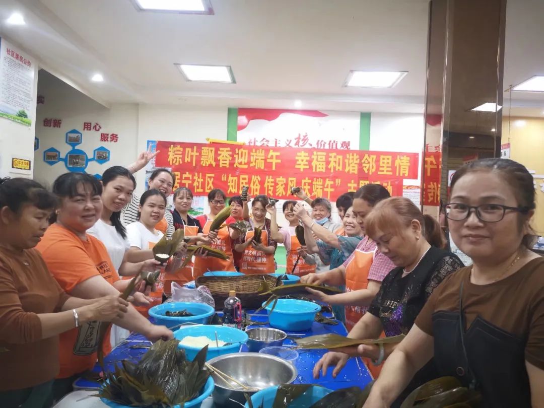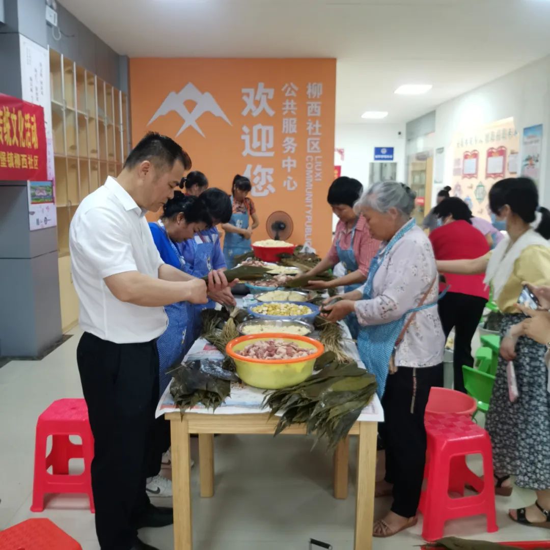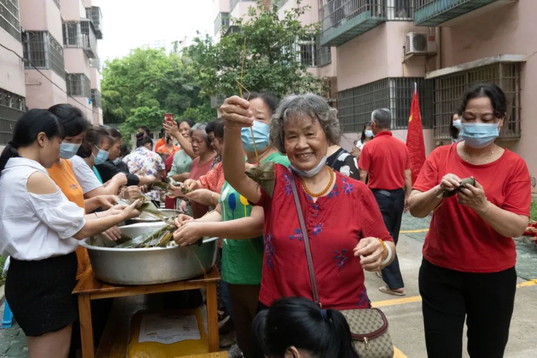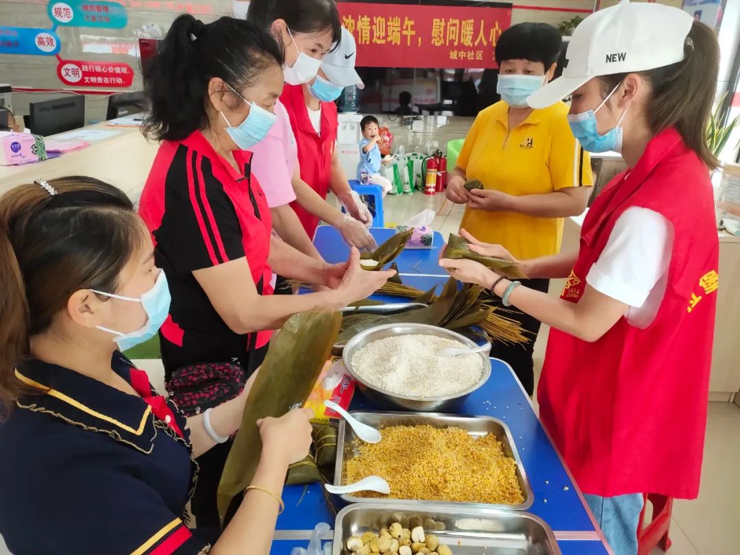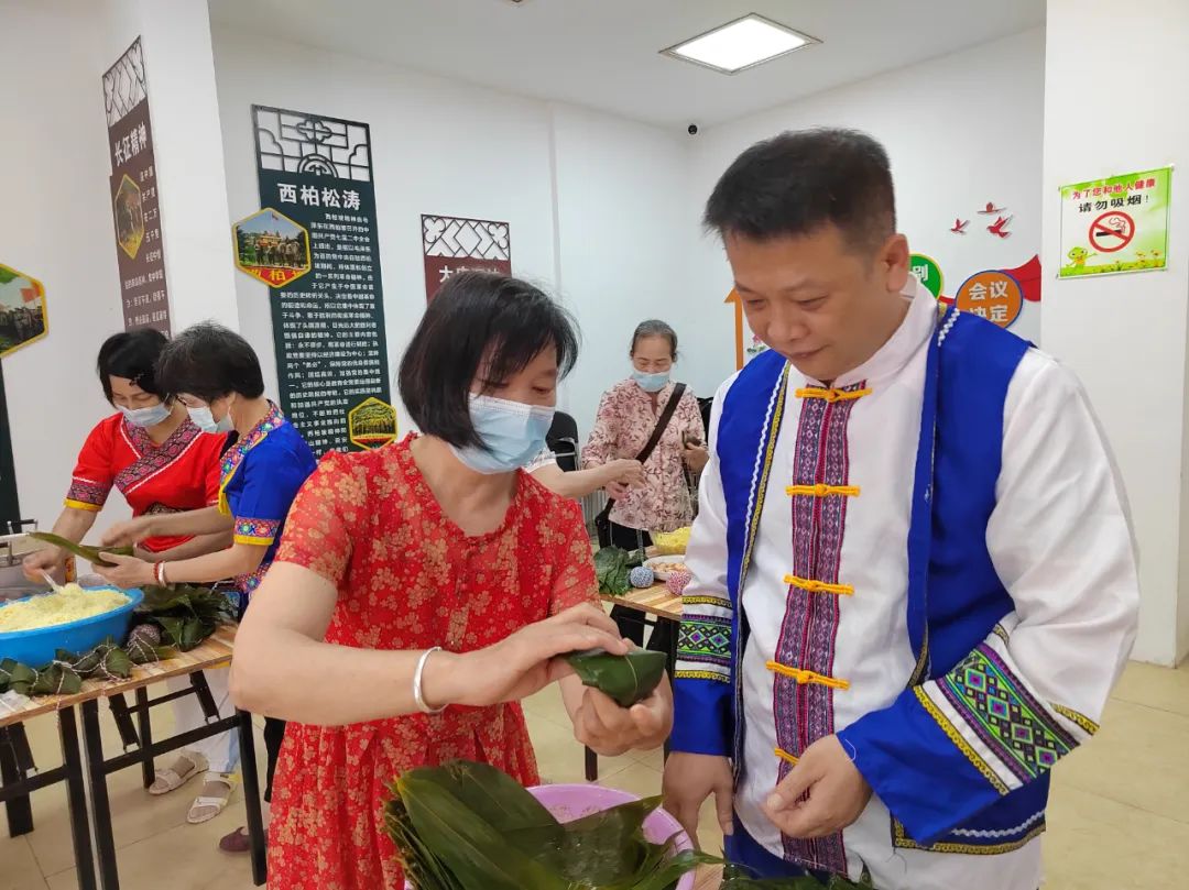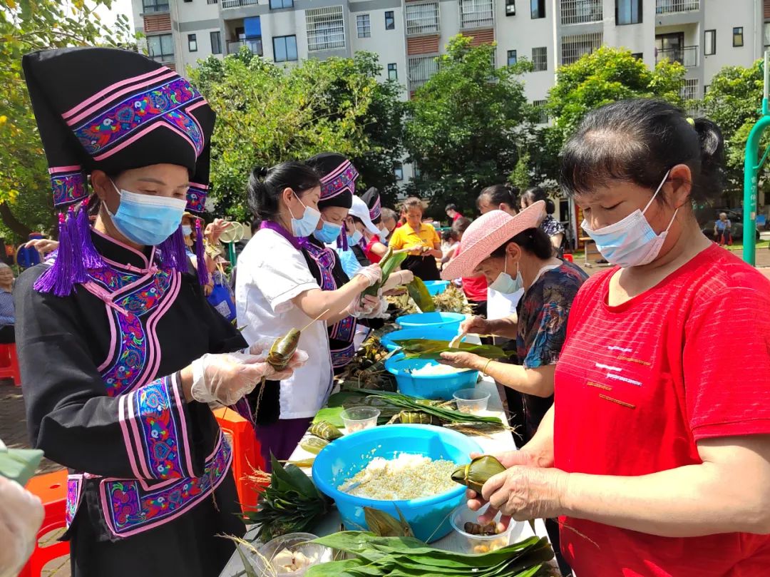 “五月端午包粽子,左邻右舍坐平排…吃水不忘挖井人,幸福不忘党恩情!”在“包粽子、献爱心”比赛环节,社区文艺队唱起了山歌,美妙的歌声活跃了现场氛围。