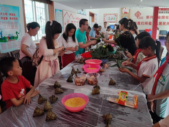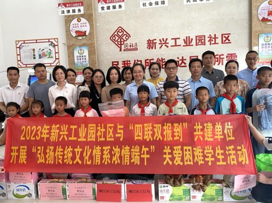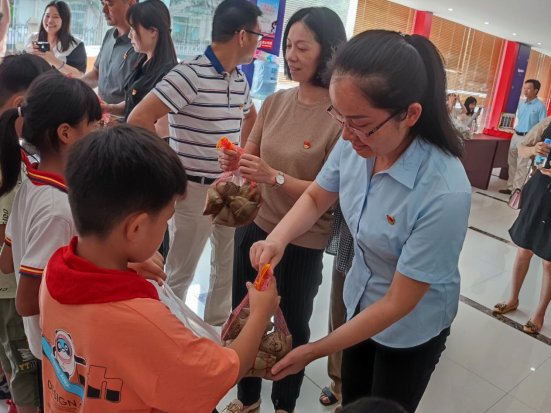 活动结束后,各位党员志愿者向新兴第二小学的学生赠送粽子和节日的祝福,让节日多了一份爱心,多了一份温暖。