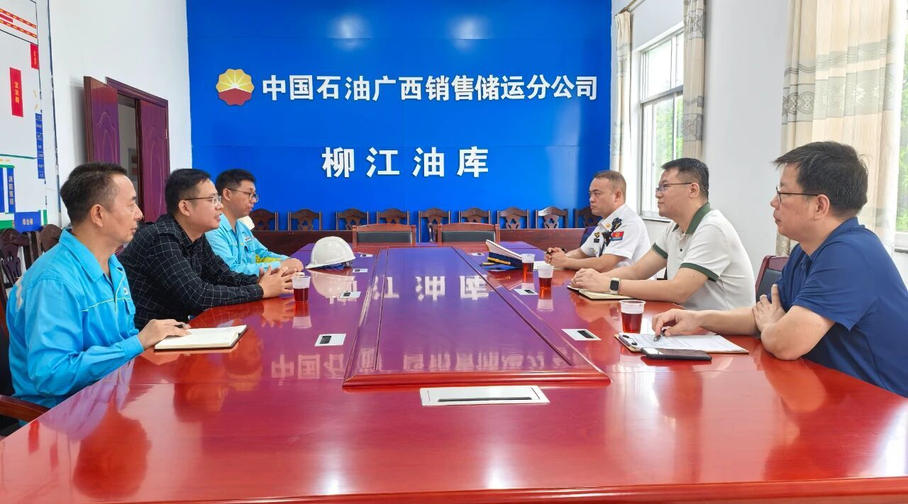 在广西石油化学工业供销集团柳州有限公司和中国石油天然气股份有限公司广西柳州销售分公司柳江油库,李团详细了解危化品储存、运输等关键环节的安全管理措施及应急预案落实情况。他强调,安全生产必须坚持预防为主,企业要进一步增强责任意识,坚决杜绝麻痹思想,严格管控运输全流程,确保每个环节安全可靠。要深化与消防部门协作,细化安全演练方案,提升应急处置能力,确保关键时刻“拉得出、用得上”,同时推动消防资源与人力资源共建共享,通过联防联控切实筑牢安全防线。