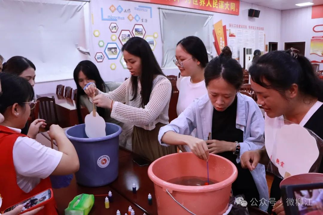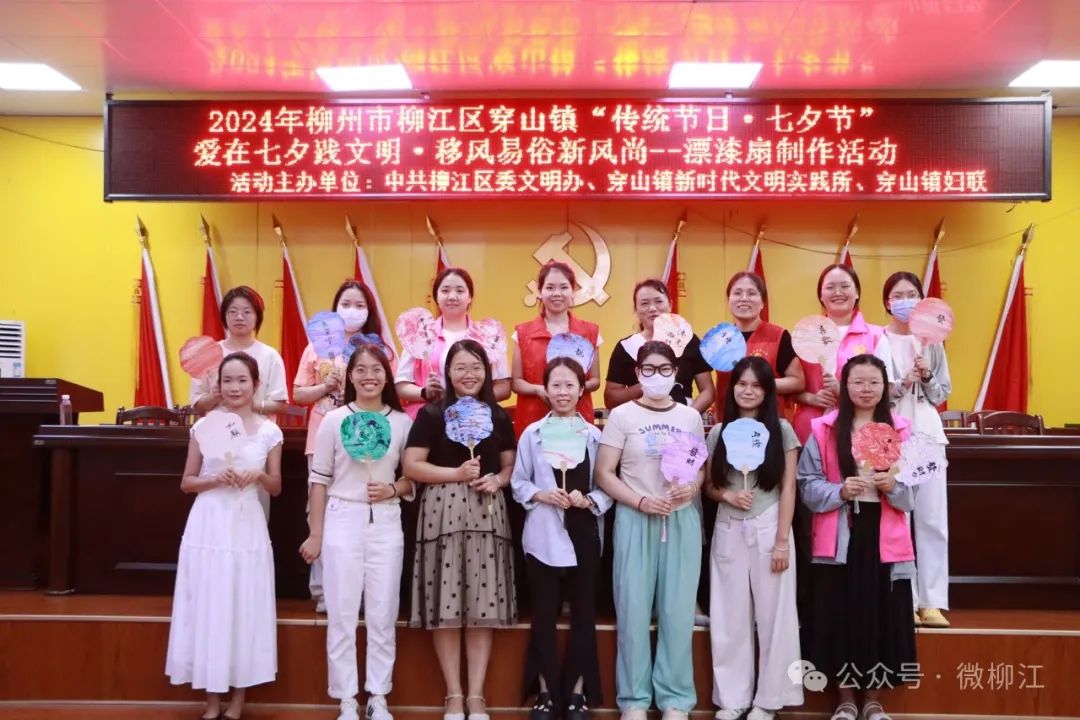 每年农历七月初七是中国的传统节日七夕节,为进一步帮助青年人树立正确的价值观、婚恋观,积极推进婚姻领域移风易俗,丰富青年人业余文化生活,8月1日,穿山镇新时代文明实践所联合镇妇联、团委、工会、柳江柳银村镇银行穿山支行开展“爱在七夕践文明·移风易俗新风尚”漂漆扇制作活动。