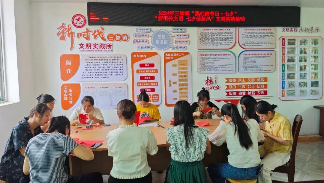 为传承和弘扬中华优秀传统文化,倡导移风易俗新风尚,在七月初七“七夕节”到来之际,8月9日,三都镇开展“剪纸传文明 七夕话新风”文明实践活动。