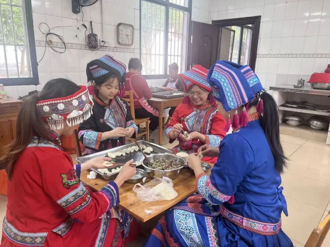 此外,镇政府还特意组织了“暖心包饺子”活动。各族群众代表围在桌子旁,舀馅、捏边,动作一气呵成,手法娴熟的人员还主动传授技巧,一个个饱满的饺子在欢声笑语中成型。