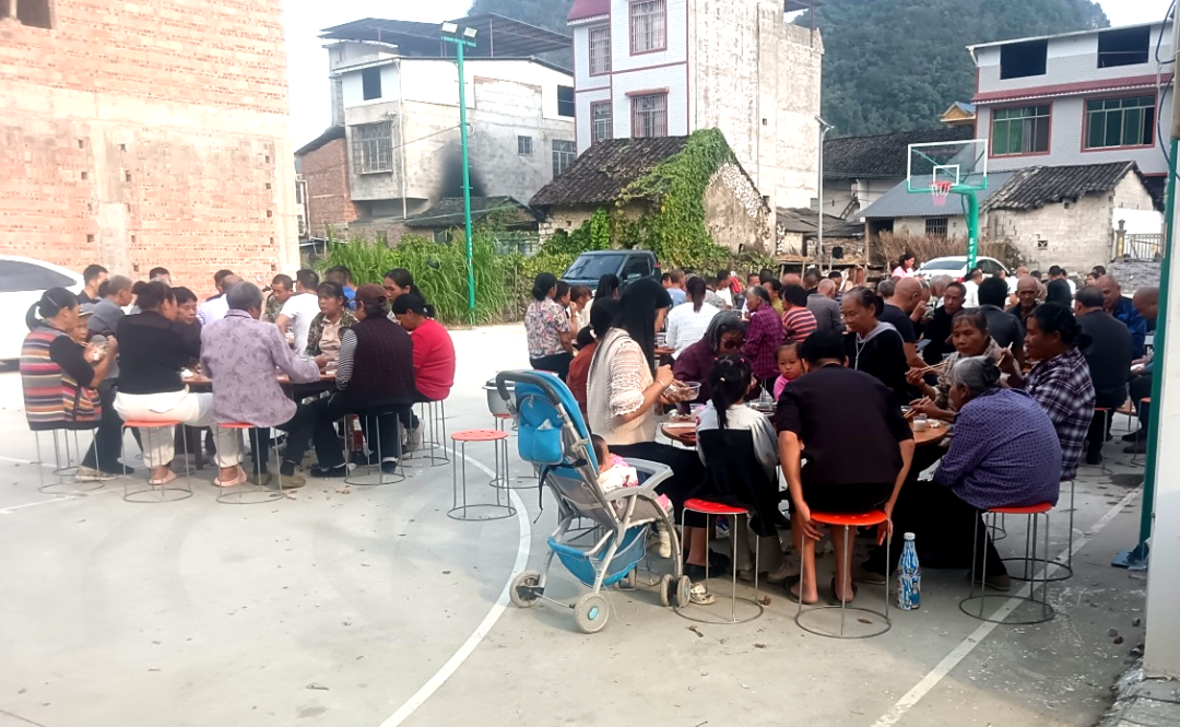 各族村民自发组织的文艺团队带来精彩表演,广场舞队伍踩着欢快节拍,几位老艺人还唱起了自编的民俗小调,精彩的节目传递真挚祝福,台下老人掌声此起彼伏;“套圈”“拔河”等活动吸引村民踊跃参与,现场充满欢声笑语。
