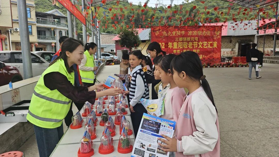 重阳节是中国传统节日之一,11月1日,三都村板元屯开展“九九重阳话团圆”活动,屯里的年轻人齐聚一堂,为老人们准备一场丰富的活动盛宴。三都镇禁毒办以“团圆”为契机,入屯开展禁毒、预防网络电信诈骗宣传,将团圆的祝福与节日的关爱送到群众身边。