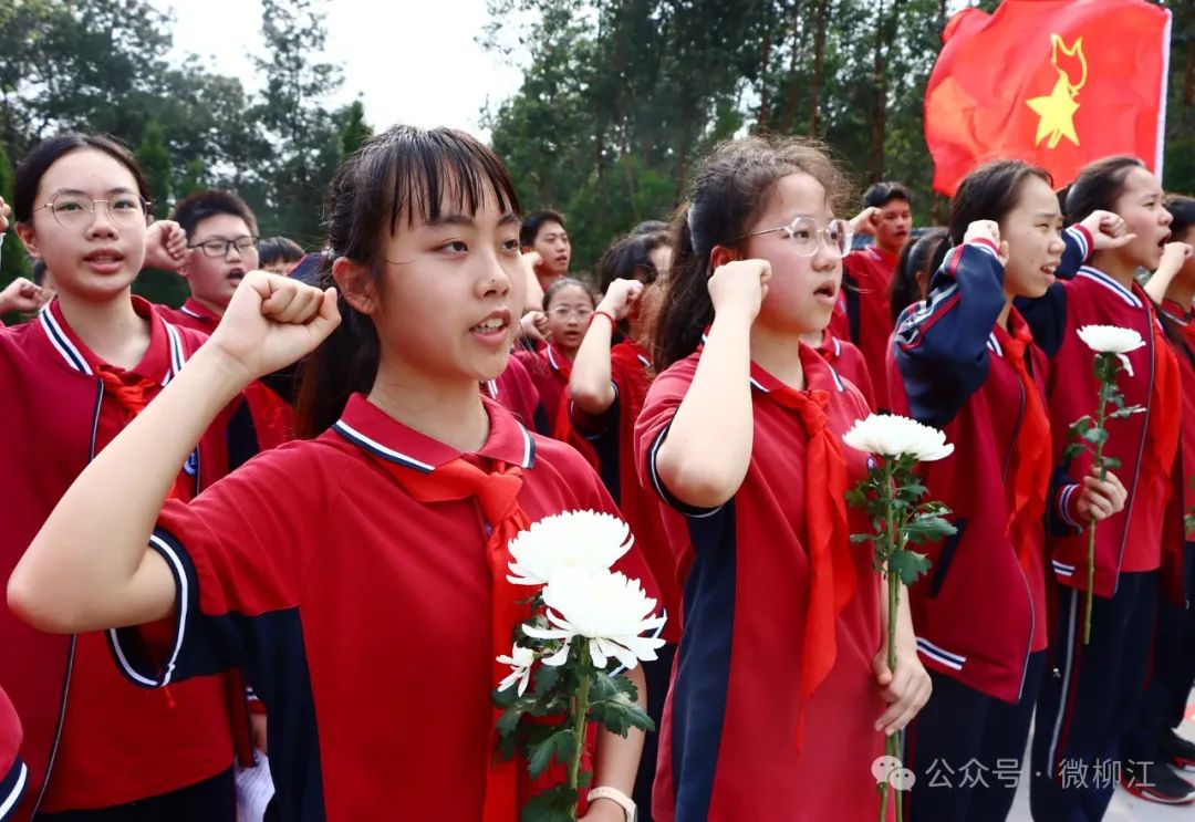 仪式上,老师向同学们讲述了柳江英烈熊柳生的故事,大家被革命先烈们追求真理的坚定信念和大无畏的革命精神深深打动,崇敬之情油然而生,纷纷表示自己以后会珍惜今天的幸福生活,勤奋学习,刻苦钻研,为实现自己的梦想而努力拼搏,为中华民族的伟大复兴贡献自己的力量。