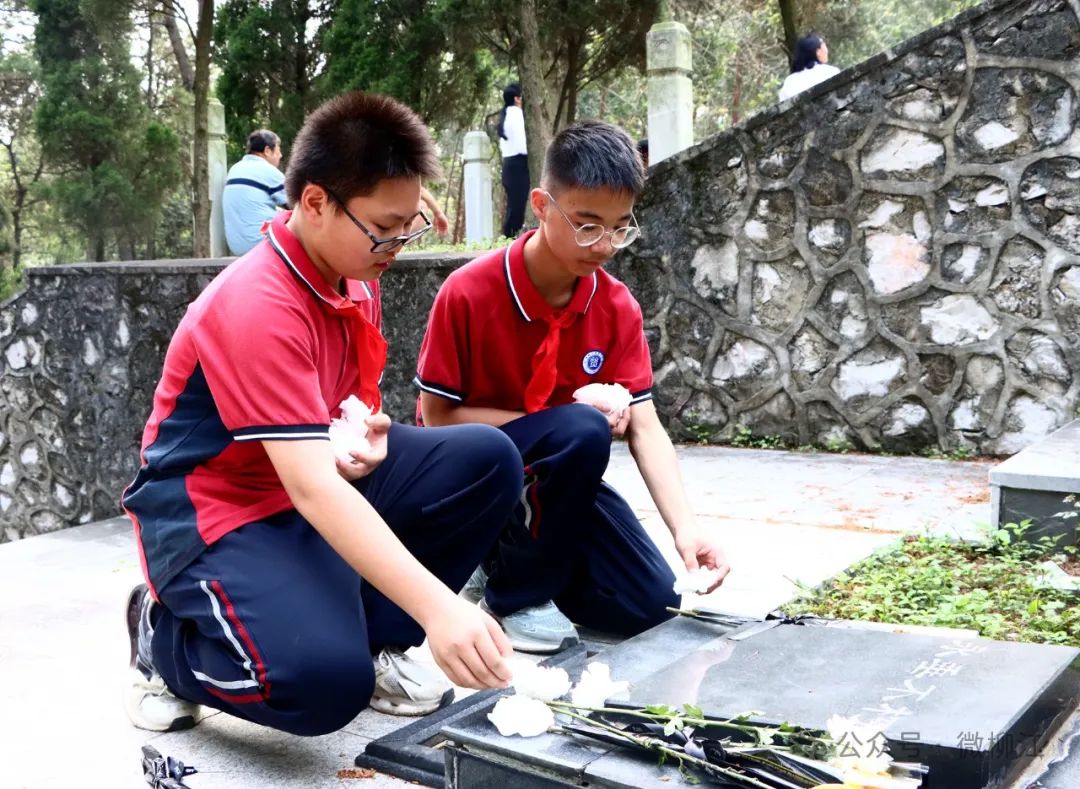 4月1日,柳州市思贤中学组织党员、团员老师以及少先队员代表到柳江区革命烈士陵园,开展“缅怀革命先烈,弘扬红色志愿”清明祭扫英烈活动,深切缅怀先烈的丰功伟绩。